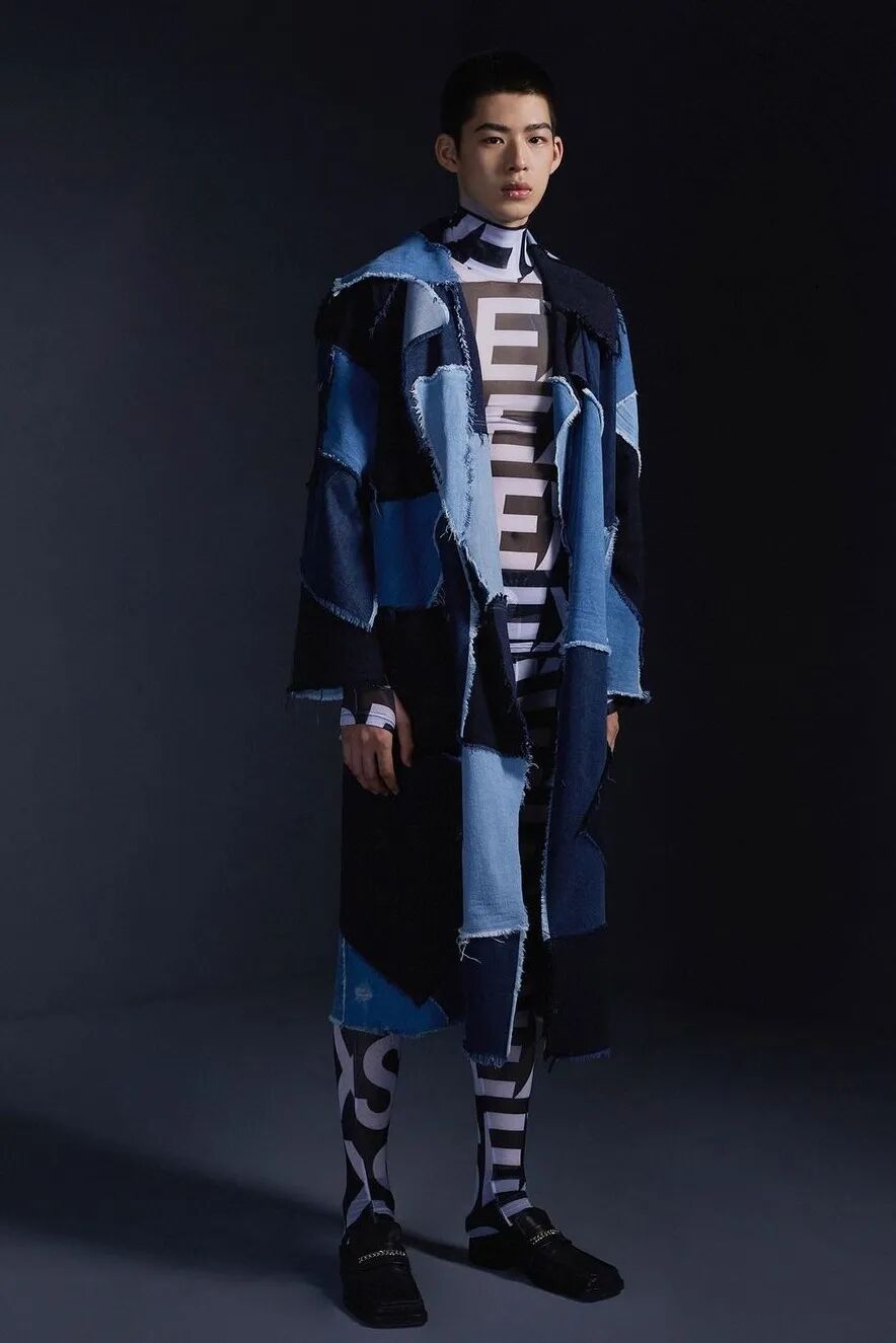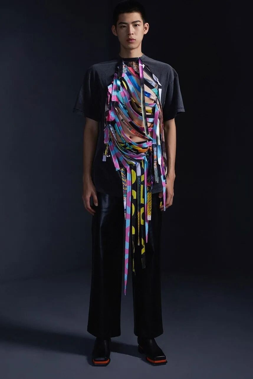 Sex/Money/Attentions/Nostalgia/RYZYORYUAN  五个关键词来表达设计师对于社会对当下年轻人固有印象的思考,通过服装这个载体向大家传递了属于新生代的野性、挣扎与洒脱。系列通过大量的立裁与解构的形式来表达本季主题,彰显出一股属于00后的鲜活、张狂、野蛮生长的神奇力量。