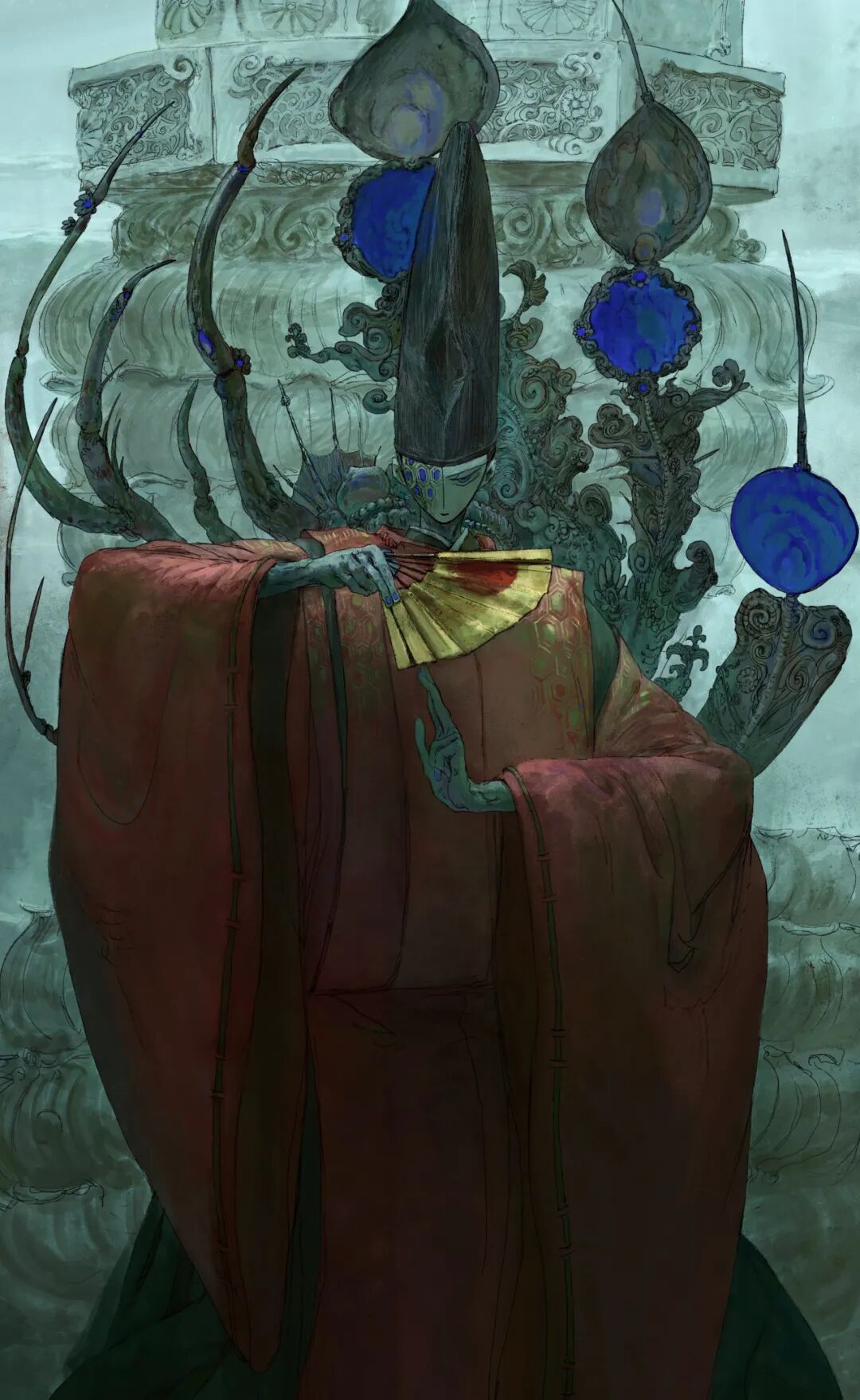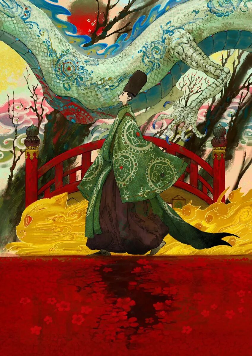 来自日本的00后角色设计师、插画师。其作品色调高级,题材通常以青赤武士为主,画面用色大胆,擅长运用多种纯度高的撞色装饰,并且在线条的处理上极为成熟,流畅的运线勾勒,颇有水墨画风的感觉。凭借极强的个人风格在推特上斩获超26W+的粉丝,おく2016年初中时期便开始在SNS上投稿,画风虽青稚却十分高产,其角色设计十分灵动有趣,和场景相得益彰,搭配的十分巧妙。