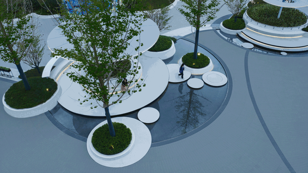 环环相扣的构成促使场地被控制在一个系统性的观念下,整个环境都将成为公共艺术的组成部分,充分发挥了每个节点体验与观赏的双重性,场地本身也成为了一个大艺术品。这便是景观与艺术的大融合。同时利用地面图案对视觉引导,在潜意识中激发人的探索欲望,消除一览无余的枯燥乏味感。