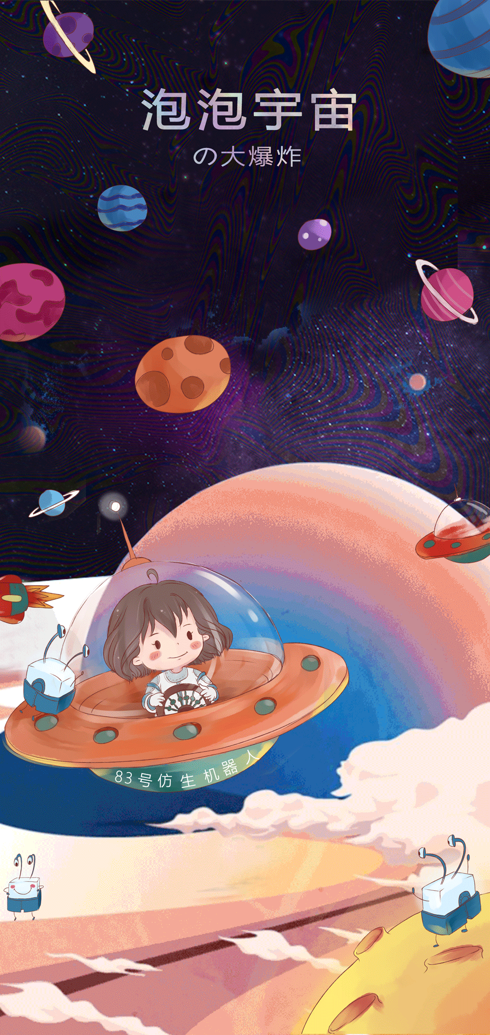2380年5月1日(023+028=051),凌晨02:38分,泡泡宇宙发生大爆炸,诞生出许多泡泡星,其中一颗最为特别的是0238号星球,它的元素体系以圆泡为主,星球状态达到新生指数最高峰,是一颗潜力无限超未来的星球。83号仿生机器人收到指令前往0238号星球进行探索,并且建立4个体验空间站。