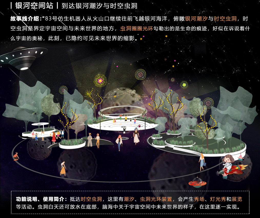 夜幕降临,这里变成了一个可以举办星球聚会的场所,泡泡球里的圈圈光环勾勒出的是生命的痕迹,好似在诉说着什么宇宙的奥秘。随着仿生机器人对0238号星球的探索完毕,在泡泡宇宙的任务也接近尾声。