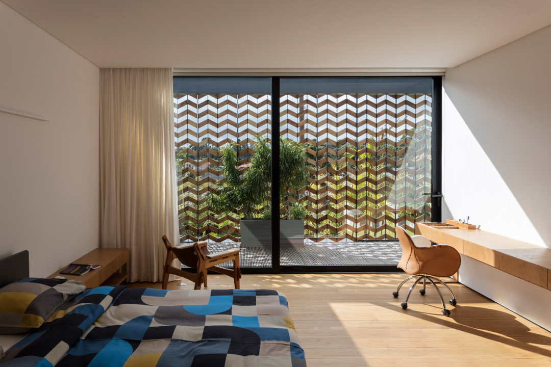 整个房子设计重视建筑、室内和景观之间的联系,且利用大面积落地窗来模糊内外之间的界限。