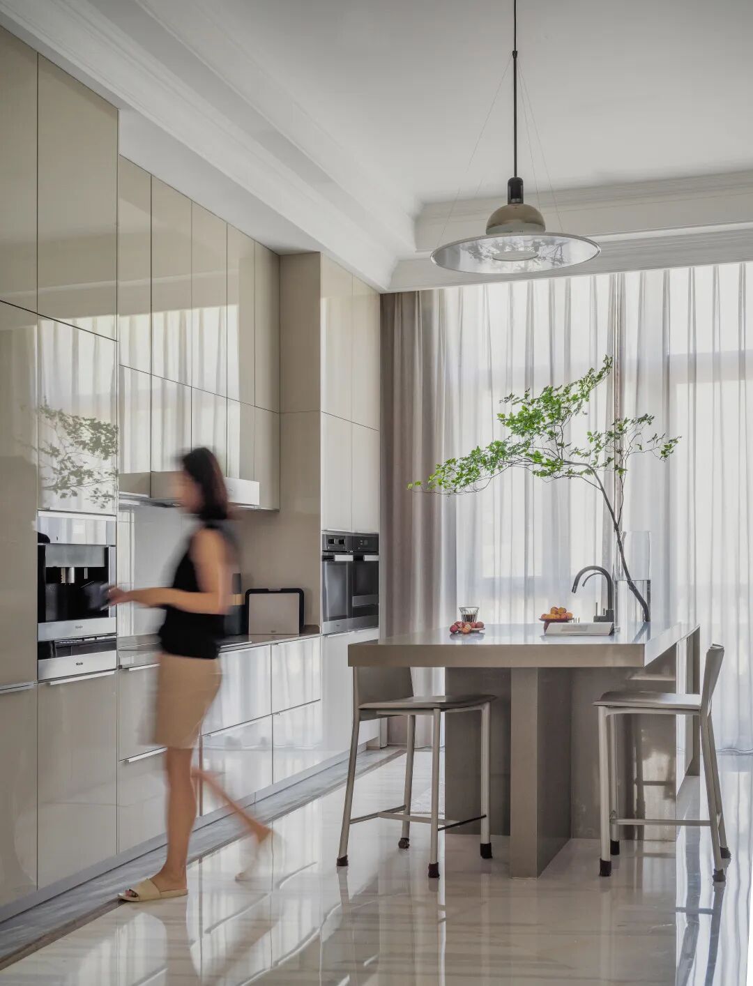 古典与极简的搭配,主人在全世界游历的各种收藏,美式家具、法国古典陶瓷、中国当代艺术品……当这些跨越地域、年代的心爱之物集合在一起,设计都以一种接纳的态度将它们有机组合起来。