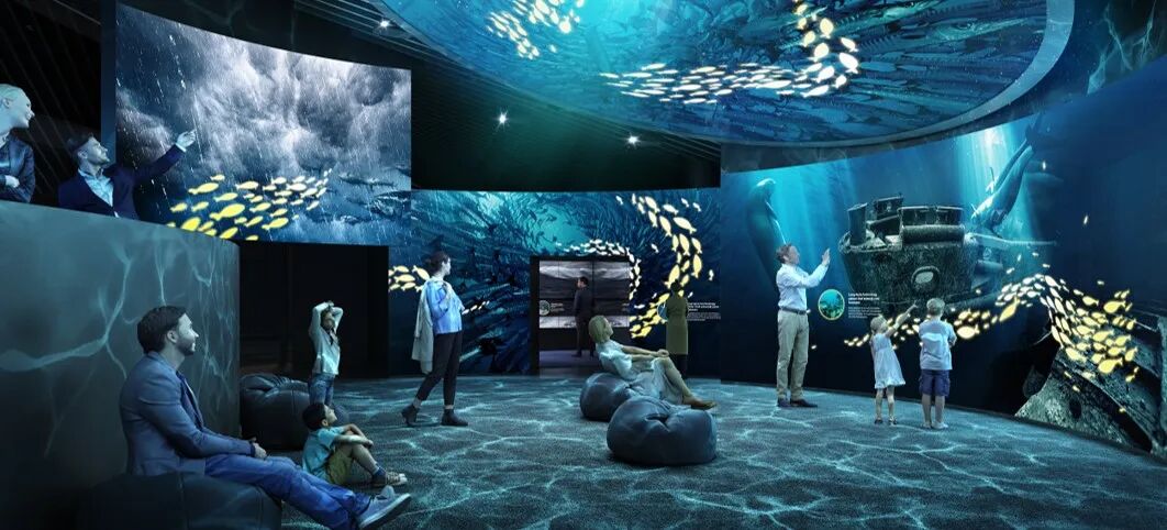 以一条鱼的生命过程为基点,我们用数字艺术演绎了一个鱼种的繁衍生息的全景图,并考察了生物链、海底天气、水文、人类活动等要素影响其活动的可能性,最终构筑起一段基于真实海洋、物种和历史信息来演绎的海底想象。跟随不同的生物主角,探索他们的生息轨迹,观众可以在数字海洋中停留4分钟至一小时不等。正如鱼与海底生物链共生,人与自然环境共生,我们也期待着灵感与数字艺术共生,承于视觉,引于沉浸,从而超越感知,触摸想象的边界。
