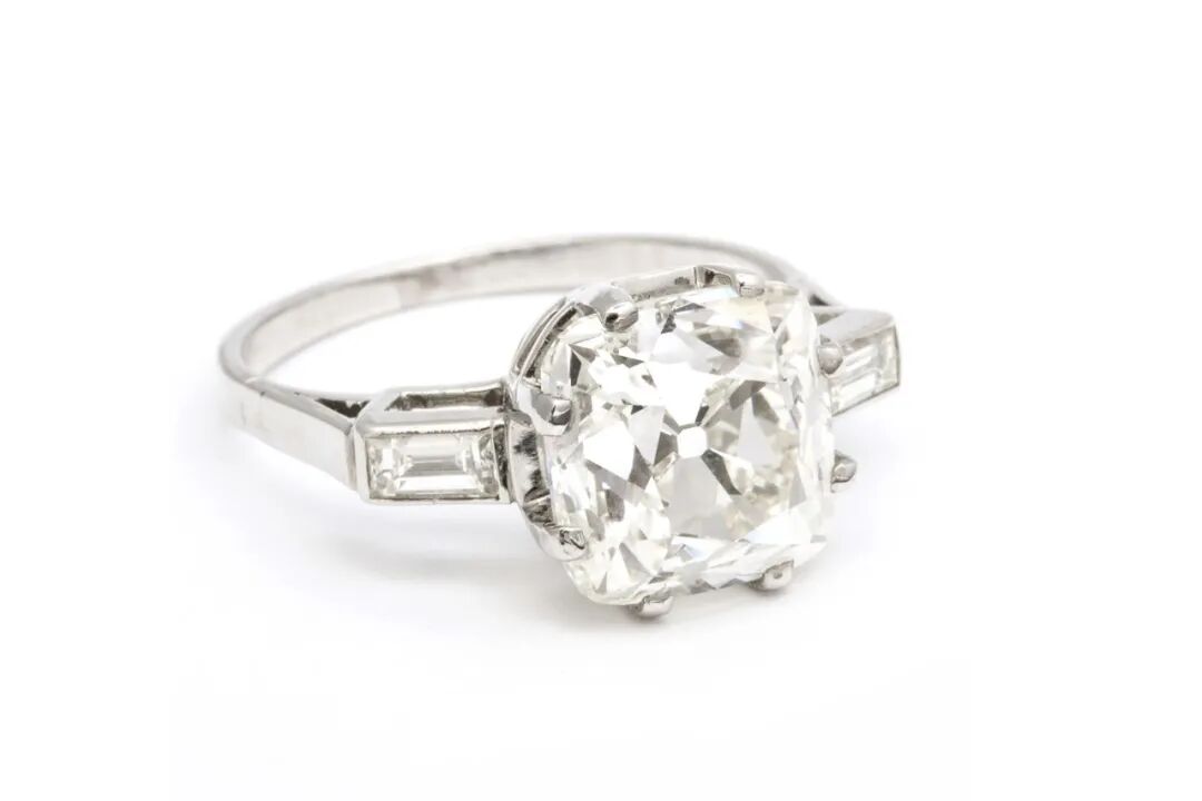 到了1930年,订婚戒指的风格开始偏向简洁的线条、时尚的图案和现代几何设计。人们受到伟大建筑的启发,开始选用大宝石来作为订婚戒指的主石。