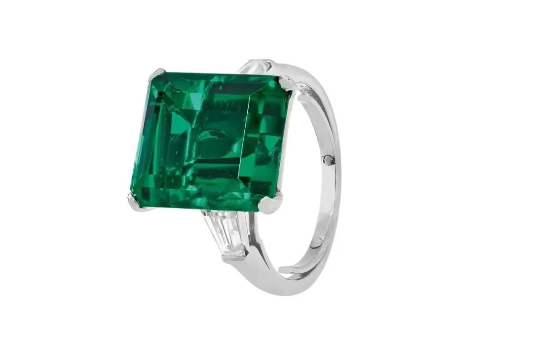 上图为1950年,梵克雅宝制作的戒指,主石为祖母绿,周围镶嵌着钻石。