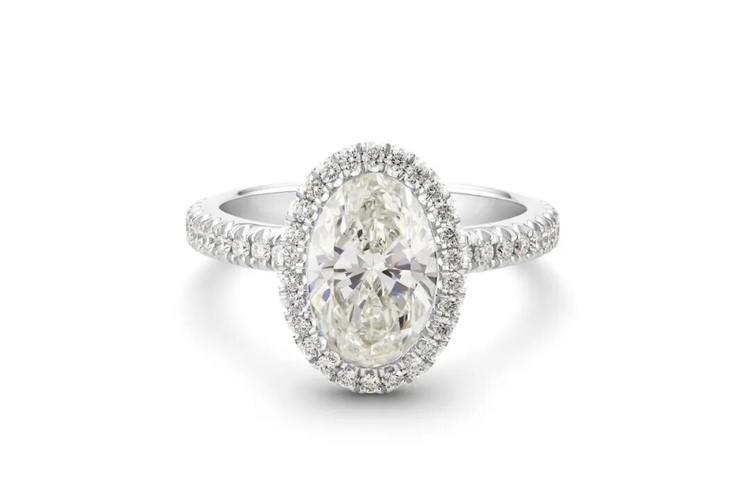 到了1950年代,随着经济的恢复,人们逐渐有小钱钱了,订婚戒指回归为镶嵌着大宝石的款式,铂金也再次回归珠宝市场,与K金一起成为订婚戒指的热门选择。