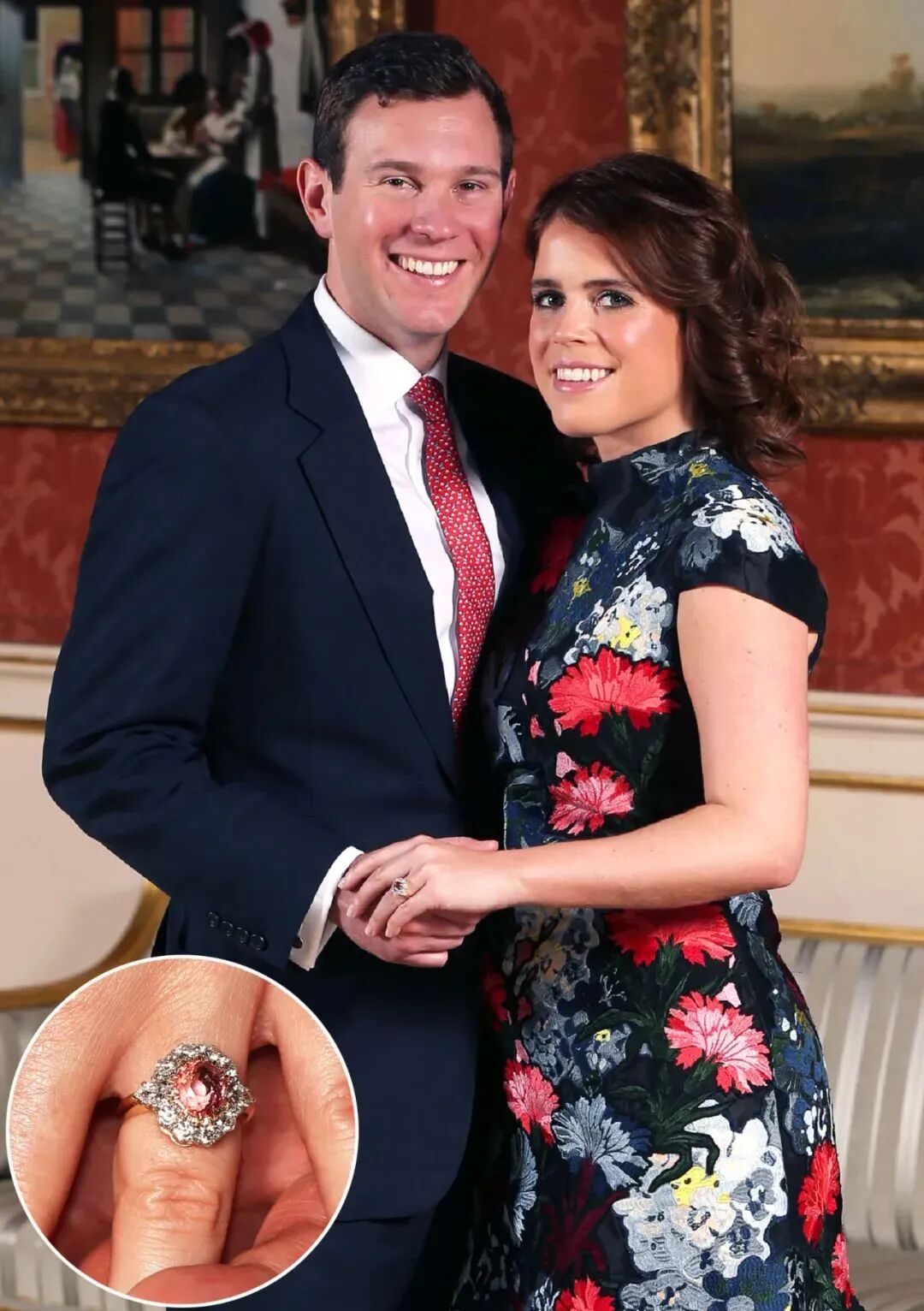 比如,2018年英国的尤金妮公主宣布订婚,她的订婚戒指上,主石是一枚帕帕拉恰蓝宝石,周围围镶了12颗钻石。