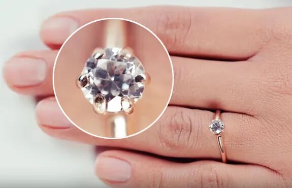 经典的单石钻戒是上世纪初人们的最爱。100年前流行的钻戒款式,比较常见的是一颗圆形老欧式切割钻石,镶嵌在六爪14K黄金底座中。