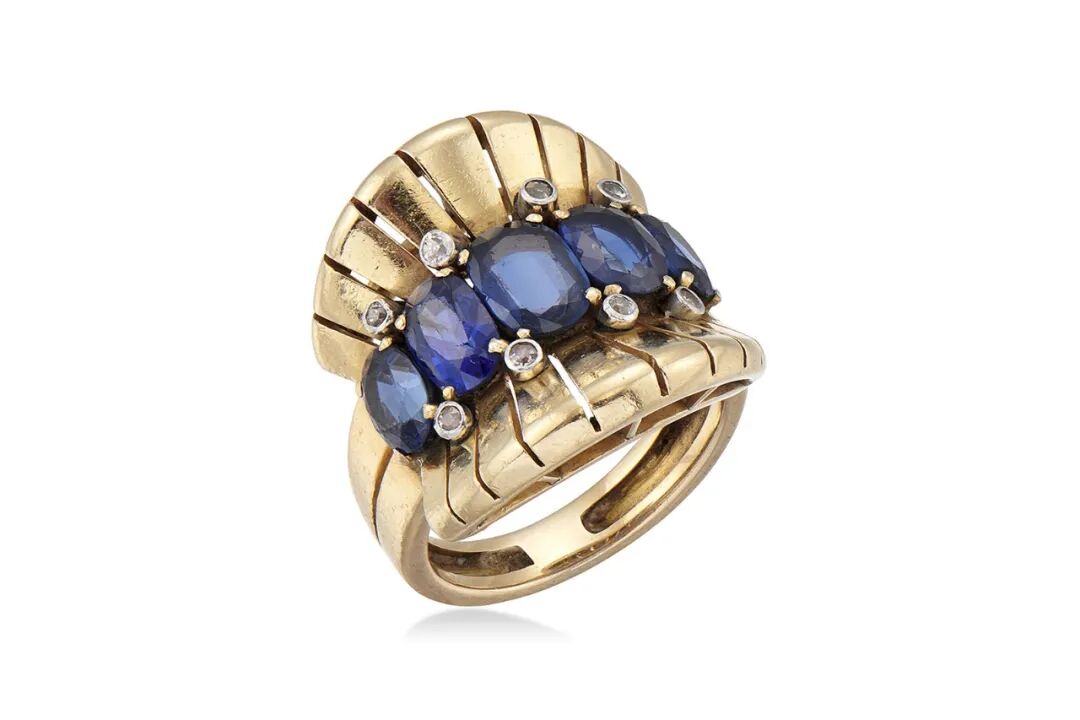 1930 年代末,第二次世界大战的爆发,极大地改变了世界,也改变了订婚戒指的风格。铂金作为战争储备被限制使用,K金逐渐成为制作订婚戒指的贵金属,尽管钻石仍然是戒指最需要的宝石,但精打细算的人们开始更多地将目光转红宝石和蓝宝石上。