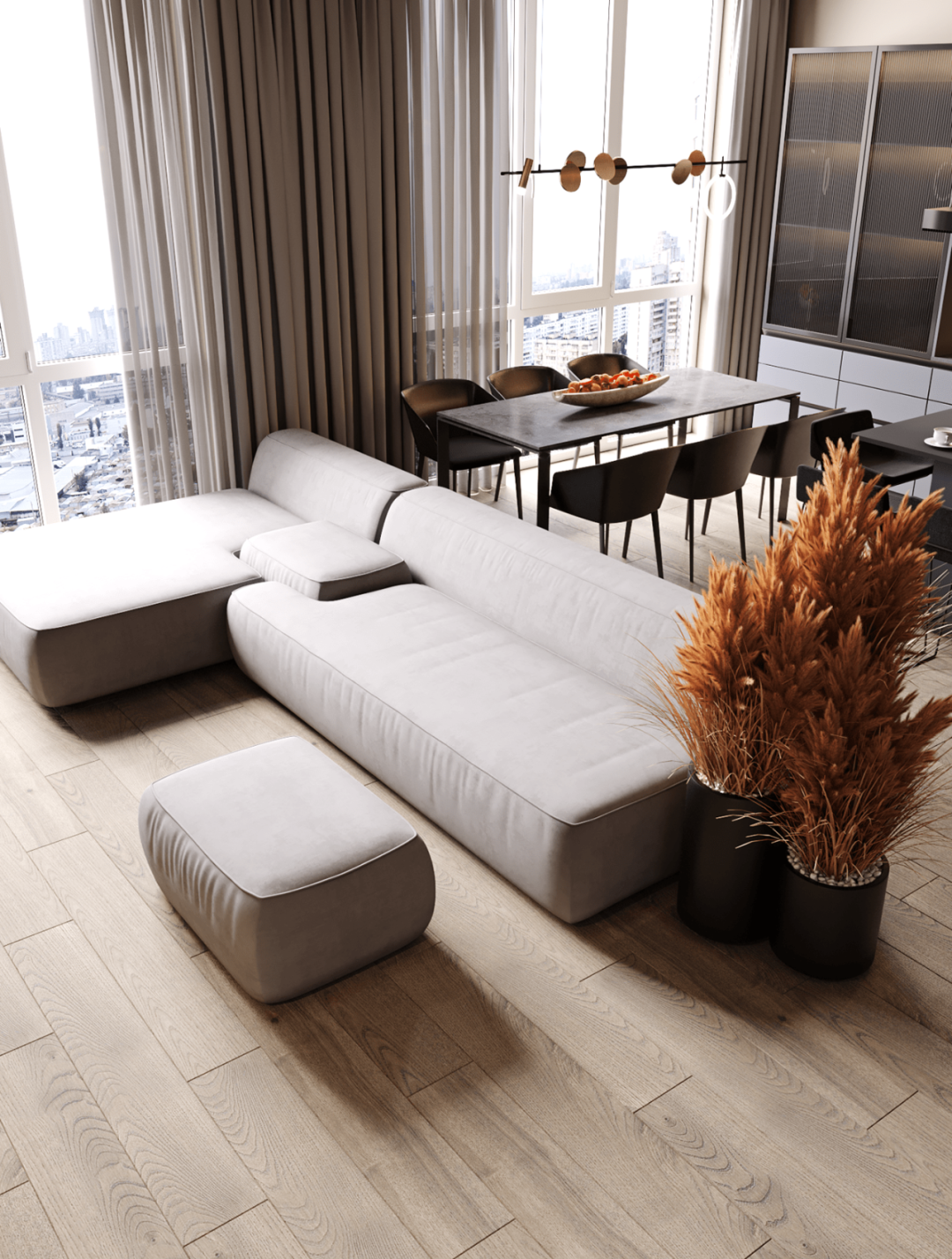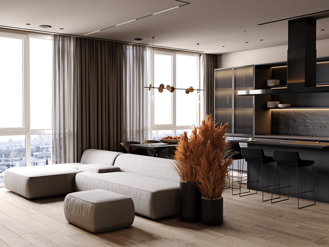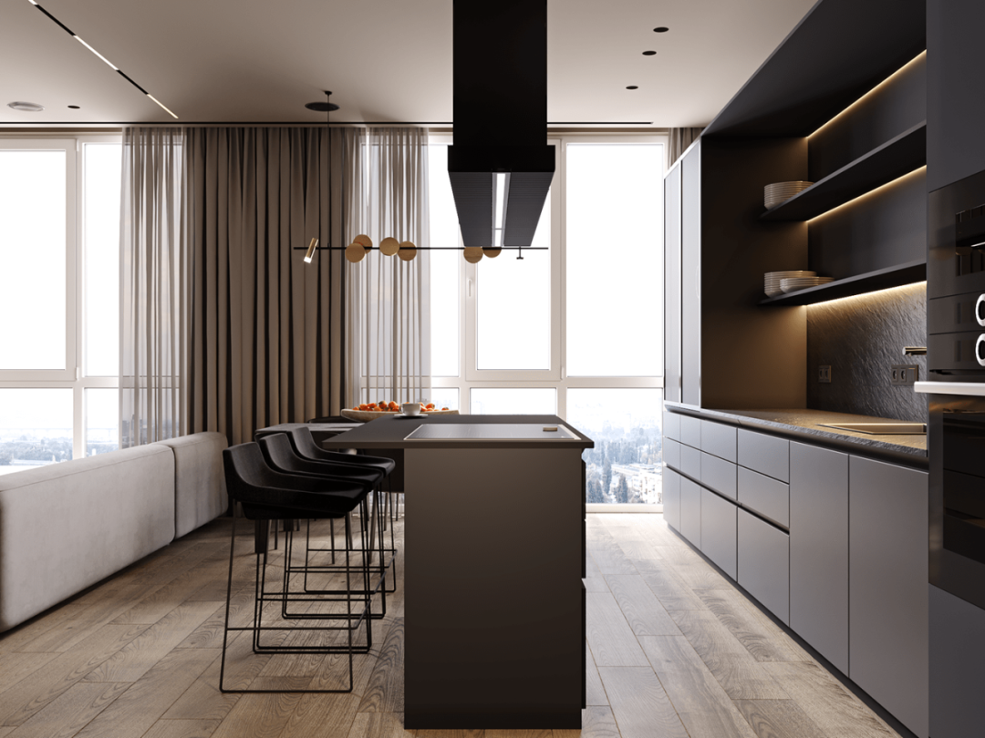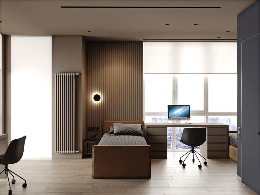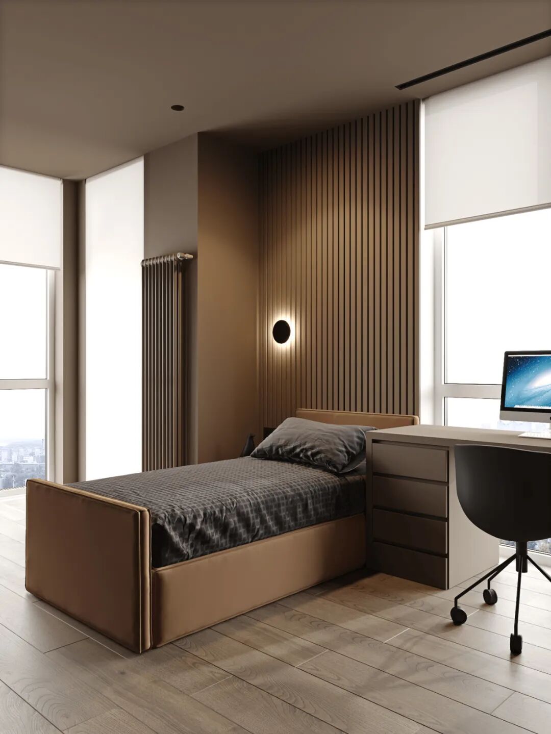 作品集2023-03-17 100㎡现代简约二居室,既有气质,也有个性! 现代空间 DAVIDOVICH design新作,100㎡二居室空间设计,内饰采用暖灰和石墨蓝色调,以及几何的对称元素,展现出一种时尚、沉稳的空间感,既有气质,也有个性,现在越来越多人喜欢这个调了。 客厅现代简约的格调,非常具有吸引力,又好看又实用。配色与装饰,让整个空间质感突出,给空间一种安静、舒适的感觉,除了要满足正常的生活需求外,也要将对艺术的审美得到展现。 客厅的一侧是厨房和餐厅,对设计材料的选择,设计师结合材料的颜色,质地,几何图形和使用规模。创造性的颜色,空间对比与调和的无限结合。 主卧整体色调和客厅一样,石墨蓝作为床头背景,木地板搭配灰白色的床品,大大的窗户搭配着米灰色的窗帘,整个空间光线充足,旁边的收纳柜,简洁大气,同时提供了大量的收纳空间。 深色的主卫空间,水磨石的沐浴间,时尚有艺术的洗手台,简洁大气有档次。 儿童房支持客厅和卧室的设计理念,搭配恰如其分,两张床摆放位置,两张靠窗的书桌位置光线充足,内置衣柜以石墨蓝,完全响应整个空间的色调,但不失童趣、温馨。 设计师 Alexandra 每个项目都将空间的功能、人体工程学为原则。设计结合最新趋势,自然元素、材料纹理等其他元素,给人强烈的视觉冲击。 本文来自微信公众号“亚太室内设计”(ID:ytsnsj)。大作社经授权转载,该文观点仅代表作者本人,大作社平台仅提供信息存储空间服务。 TAGS: 住宅室内现代空间 相关文章Kleoniki Andr…这是大王Day.281获奖作品《2020最佳图书…精选头像|搞怪来袭!安东尼奥·布埃诺 作品配色清新梦幻的场景插画,充…美国Jennifer Mc…【小鹏设计】设计小改/动力…【首发】地点空间丨打破空间…谢商家不坑之恩!只骗有钱人…