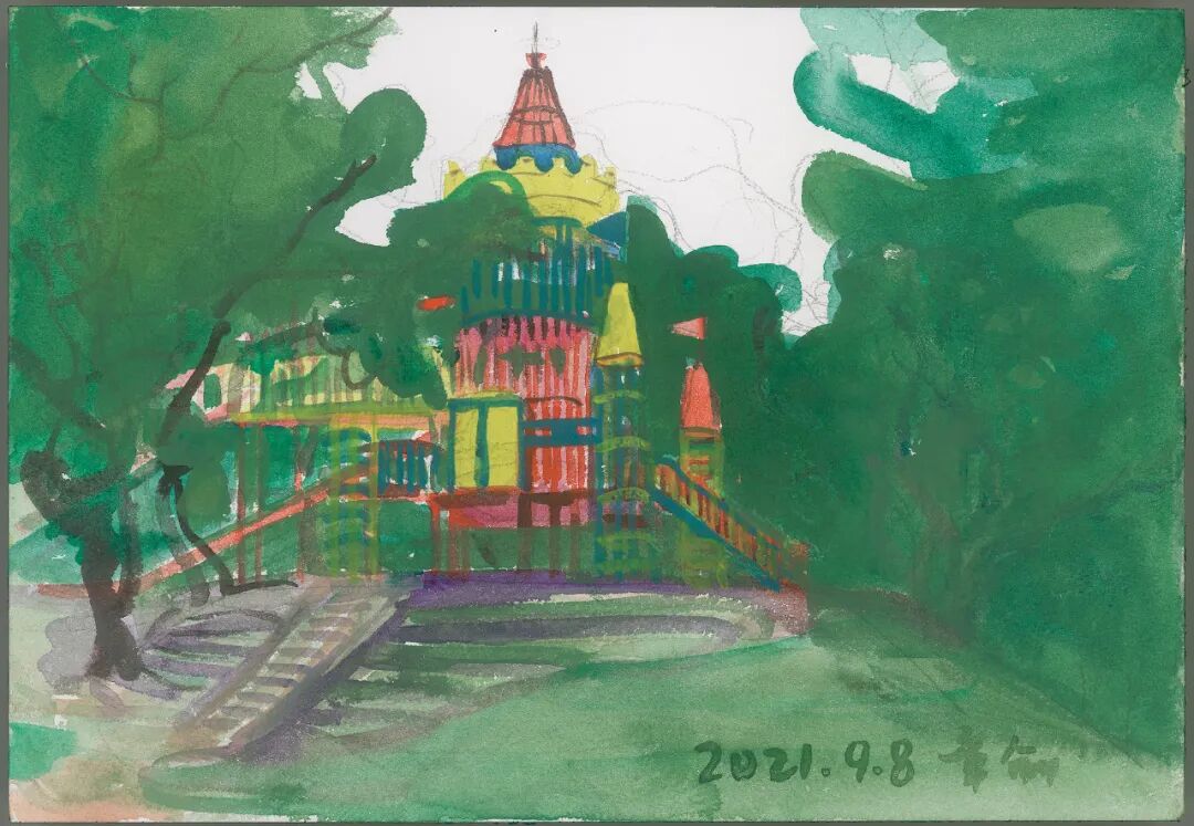 章剑 栅栏 2021 纸本水彩 18×26cm