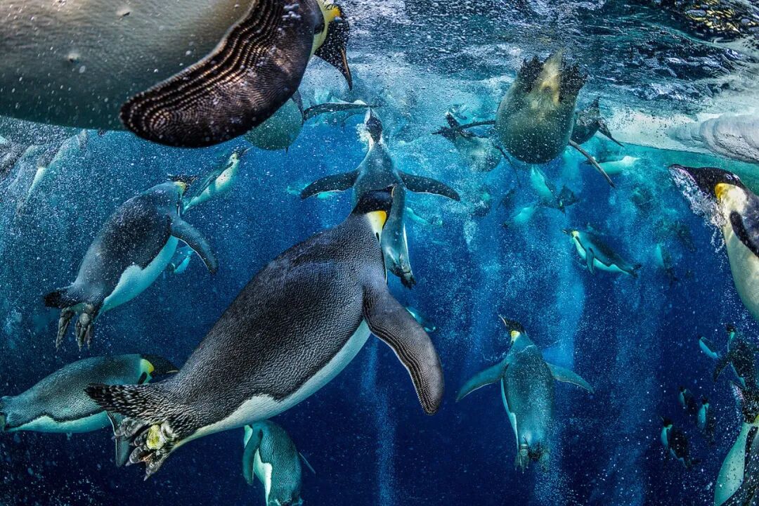 帝企鹅一次出海数天甚至数周,以捕猎食物带回家给饥饿的小鸡。他们可以潜入超过 1000 英尺深。尽管是所有南极企鹅物种中最高和最重的,重达 80 磅,但它们在水中优雅而快速地移动。