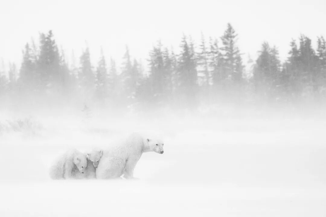这张图片代表了母性的保护本能以及母亲在严酷的冬季气候中保护幼崽时的亲情、爱和关怀。