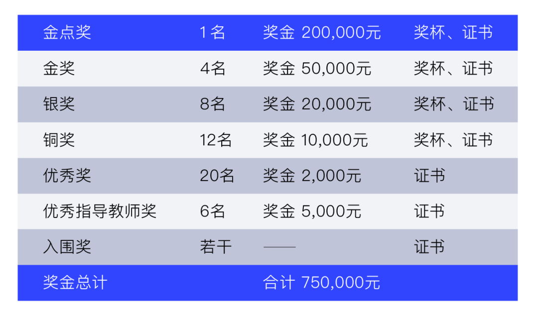 本专项赛奖金总额达75万元,设金奖1名、银奖2名,铜奖3名,优秀奖5名。