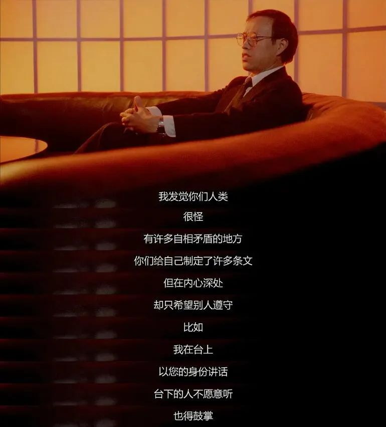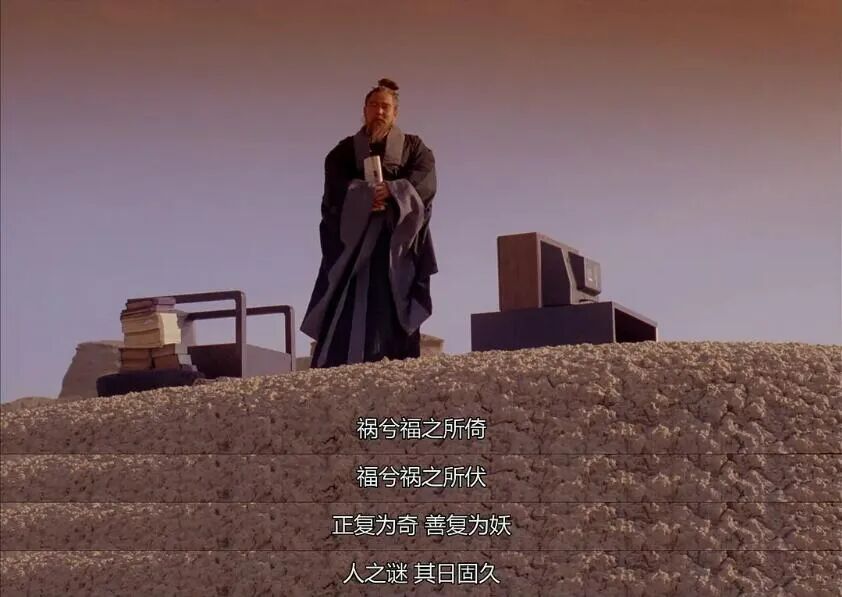 特别是在梦境中,通过老夫子坐在沙漠中看电视这种充满荒诞感的镜头,加上那句“祸兮福之所倚,福兮祸之所伏”的谶语,实现了时间和空间的高度概念化,和对一个时代的预告。