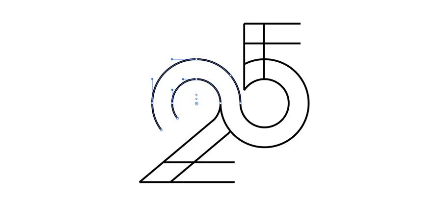 数字类logo也是平面设计师会常遇到的工作,最常见的就是周年庆logo和第XX届会议的logo,所以,今天葱爷给大家分享几个简单、好用的数字logo设计技巧。接下来,我以数字25为例来进行演示。