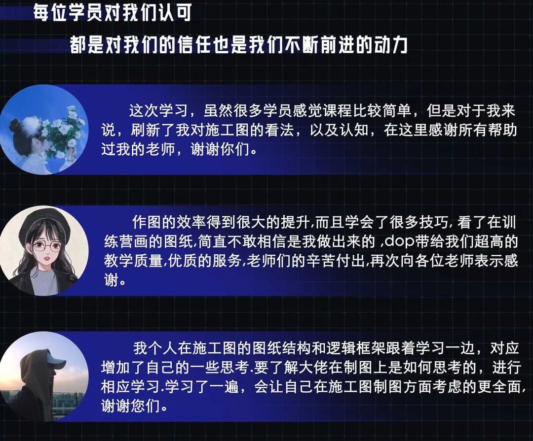 如果有小伙伴们想轻松理解设计意图、Get高阶的绘图技巧和插件的使用套路,提高工作效率、掌握施工图的底层逻辑,绘制出符合主流标准的施工图。推荐加入《dop施工图深化内训营-初阶班》