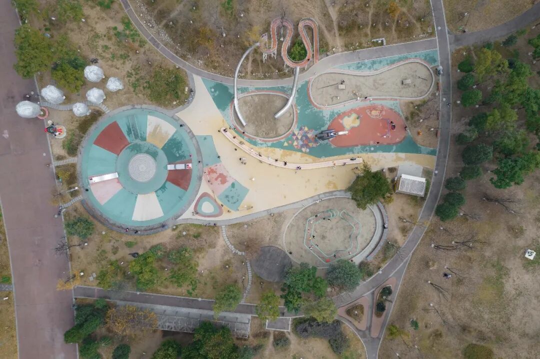 公园还设计了内环外环交错形成的环形步道,可以进行骑行等运动。除此之外,公园还建设了超过70个地下车位和33个地上车位,地上车位中配有充电桩,方便新能源车使用。
