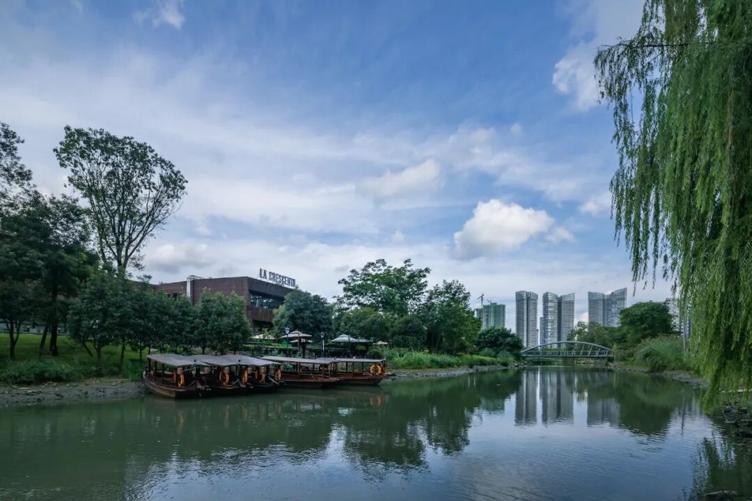 东区的小湖边有主打意式家居美食的TC品牌集合店、米其林星厨坐镇的法式餐酒吧BISTRO-X、中式下午茶遵生小院等网红店,成都高新区桂溪生态公园婚姻登记处也在这里。