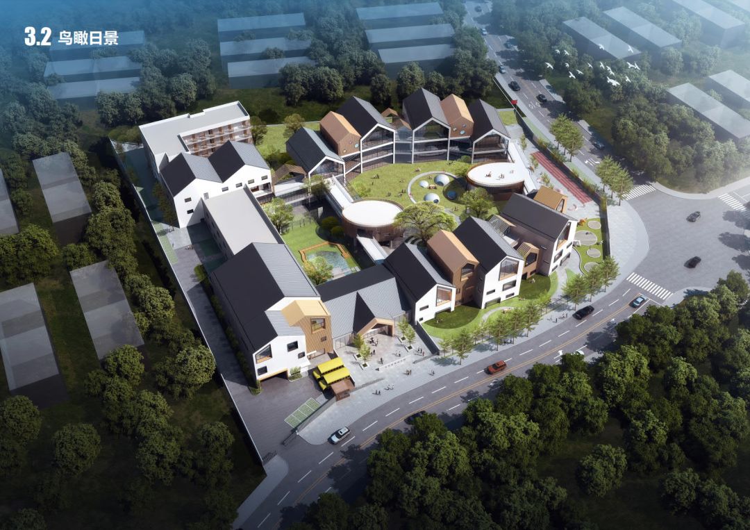 园方提出了“爱与乐趣”的开放式教学理念,包含三点:会呼吸(绿色自然)、面向未来(探索精神)、无限可能(个性发展),园方不希望幼儿生长在温室里,希望他们能感受到自然的氛围与温度。结合用地具体情况与园方的教育理念,建筑师提出了“村落”的概念,希望该幼儿园建成后能成为一个孩子们可以自由探索的“城市村落”。