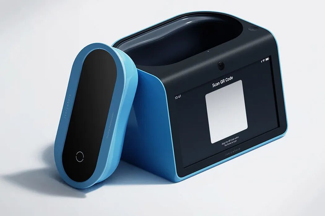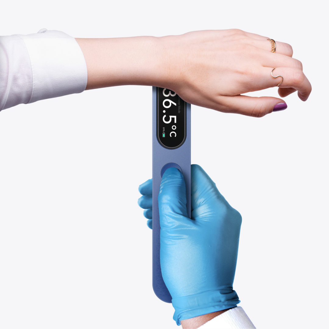 一款专注于举止姿态的 Jverywhere 温度计,它有一个带温度传感器的显示屏和一个符合人体工程学的轮廓后盖,可以从后面握住而不会从前面露出手。从而消除检查人员不必要的接触,降低病毒传播的可能性。