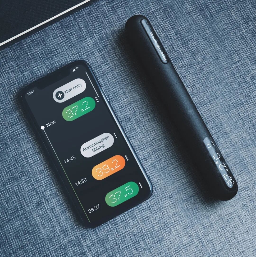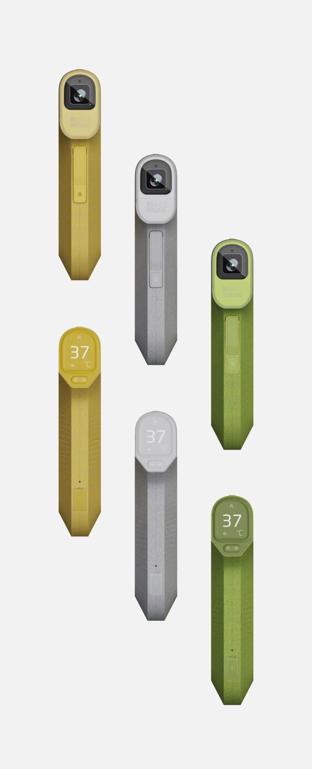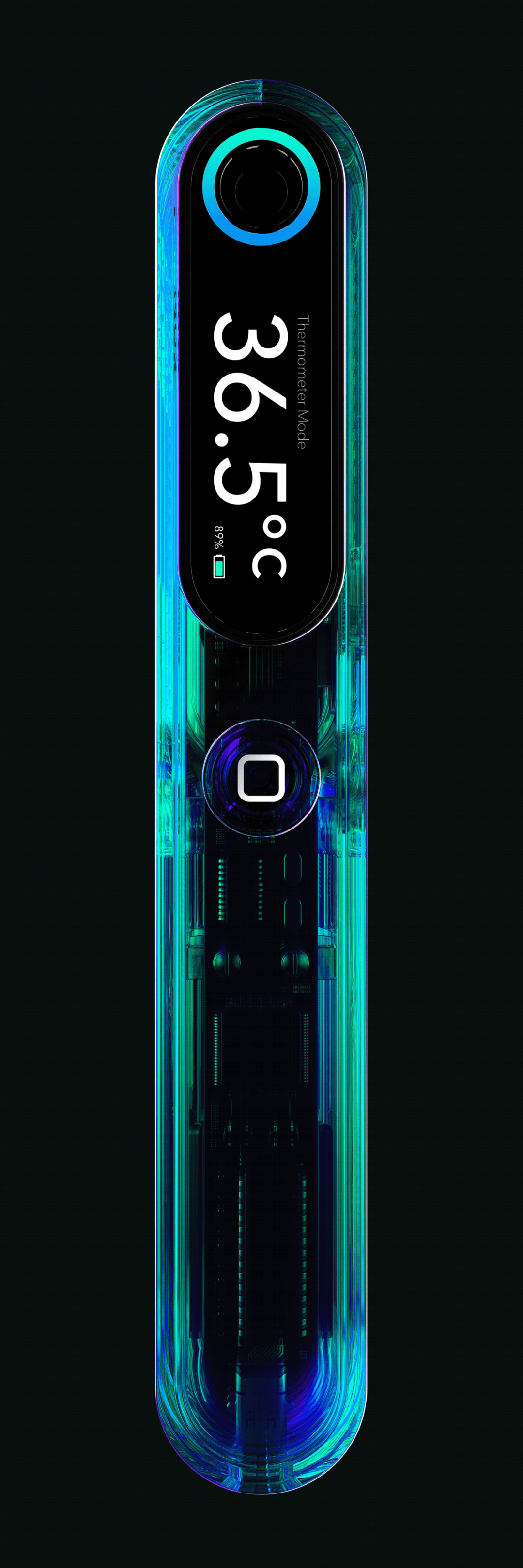 温度计在 COVID-19 期间被广泛使用,成为人们的日常用品,该设计旨在传递一种和谐的情感,圆顶圆形镜片形成鲜明对比,使设计既可爱又具有标志性。