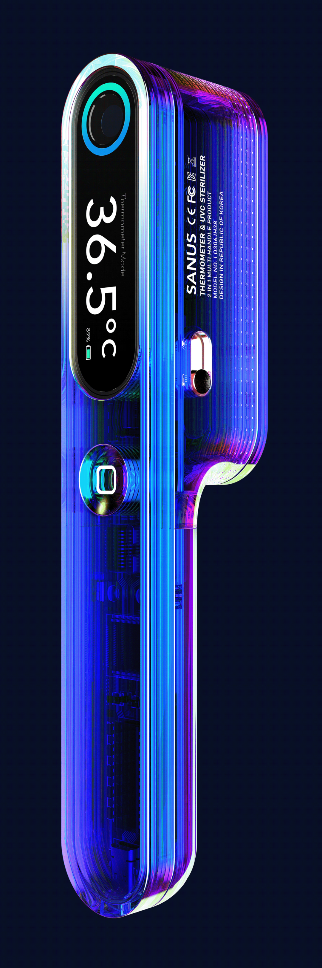 SANUS是一款针对旅游、登山、公司、医院等人群聚集的公共场所不受空间限制的体温计设计。可频繁进行UVC杀菌,防止接触感染,实时测量体温,快速排除疑似感染,预防传播感染。