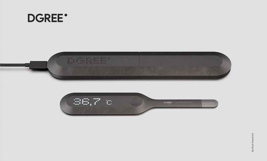 DGREE 温度计的设计注重可用性和创新功能,最大的特点是随时随地的可用性。在对人类行为进行用户研究后,该设计脱颖而出,温度计易于读取、使用和随时随地充电。