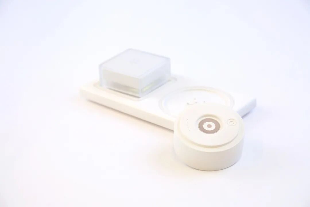 toio™创意机器人套件包括:一个toio™控制台、两个立方体小机器人toio™核心Q宝,和两个toio™控制环。