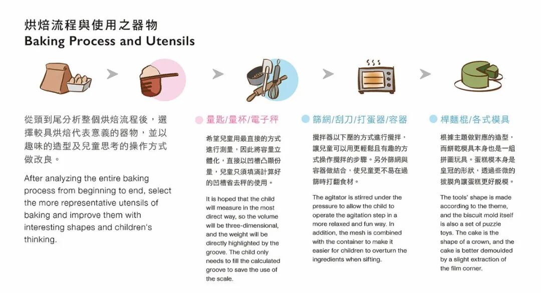 因此设计师以桌游为概念设计一整套的烘焙流程游戏,并根据儿童操作模式优化,让孩子能在玩乐中成长。