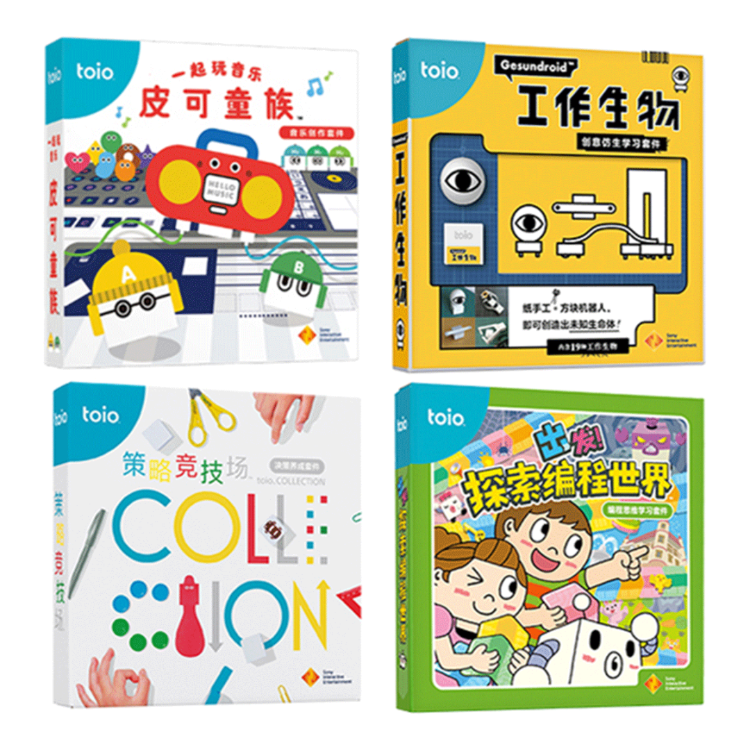 面向6岁以上儿童,索尼针对中国市场率先推出了四个各具特色的专用主题,配合toio™创意机器人套件使用。四个专用主题分别针对性地培养孩子的决策思维、创意仿生思维、编程思维与音乐创作思维。