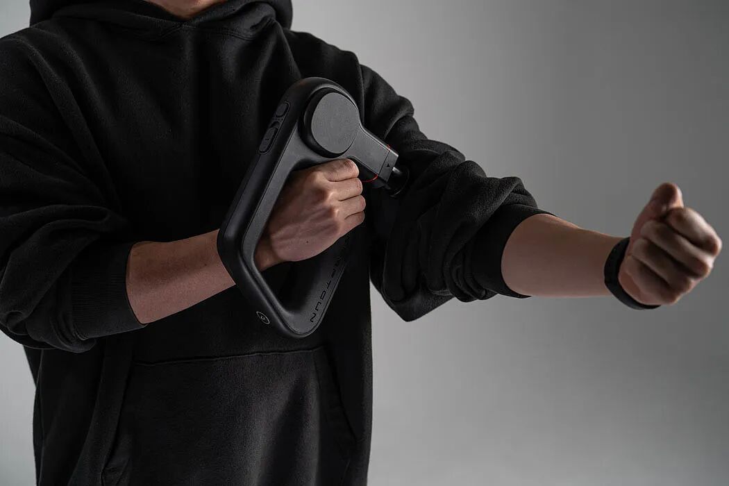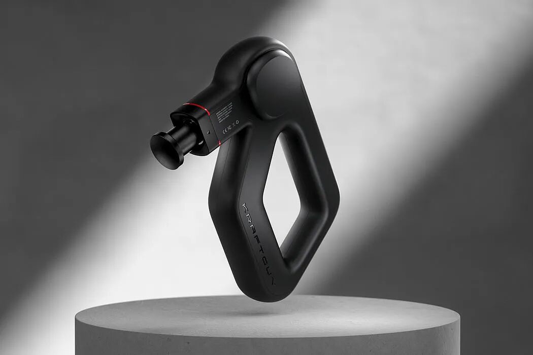 这是一款实用的无噪音按摩枪,内部强大的24V无刷电动机和深色半透明罩设计灵感来自意大利跑车的透明发动机罩。KRAFTGUN是目前最强大的按摩枪之一,其主要设计元素是圆形,象征着大胆和柔软的双重存在,体现了耐久性和人体工程学。