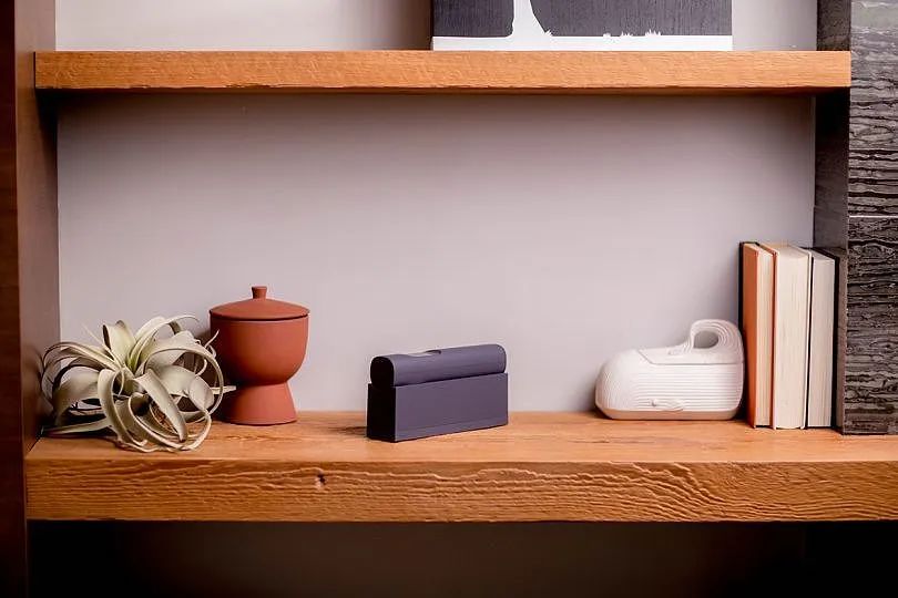 按摩椅通常很笨重,与现有家具的美感不符。Dong Dong 从经典的充气泳池中汲取灵感,靠背弯曲形状受到海浪启发。按摩器是模仿靠背曲率的圆柱体,可以拆卸用以按摩身体的任何部位。