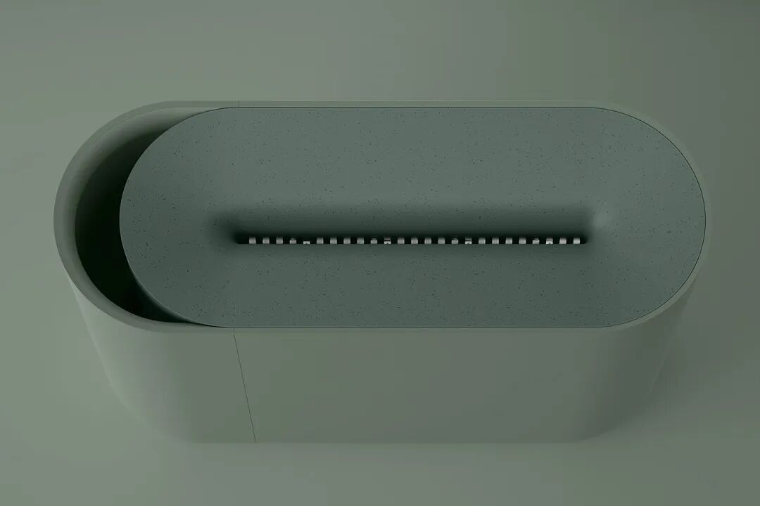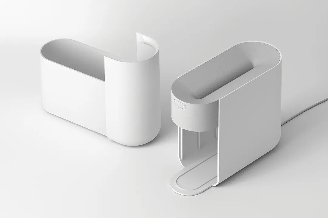 Aperture 碎纸机旨在以不显眼的方式融入任何家庭或小型办公环境。在功能上,只有两个按钮——自动和反向。碎纸机的正面通常有一个观察窗,需要用户蹲下才能看到里面的东西。相反,为了改善人体工程学,通过延长产品外壳创建一个观察孔,让用户可以站立查看内容,这个孔也可以兼作无缝拉手。