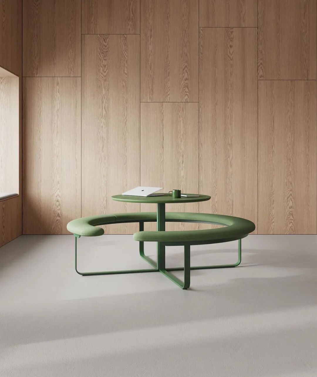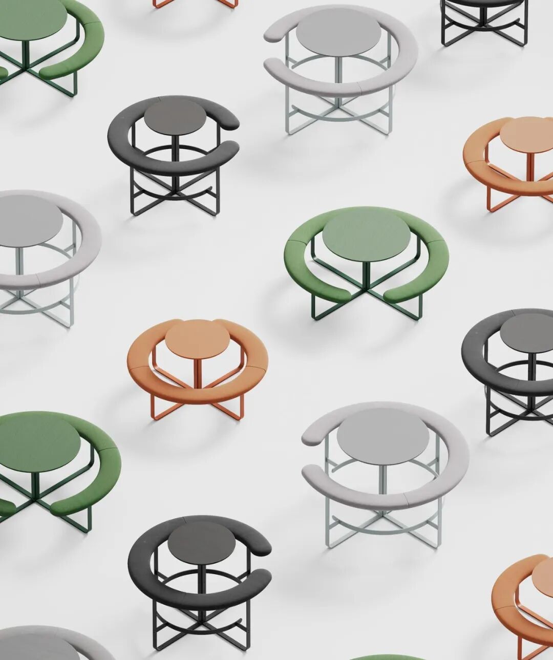 Picnic将座椅和桌子整合到一个单元中,可用于办公会议、用餐和协作区。无论是站在其中一个吧台高度选项中快速开会,还是在低高度模式中一起用餐,Picnic 可以让用户面对面沟通互动。