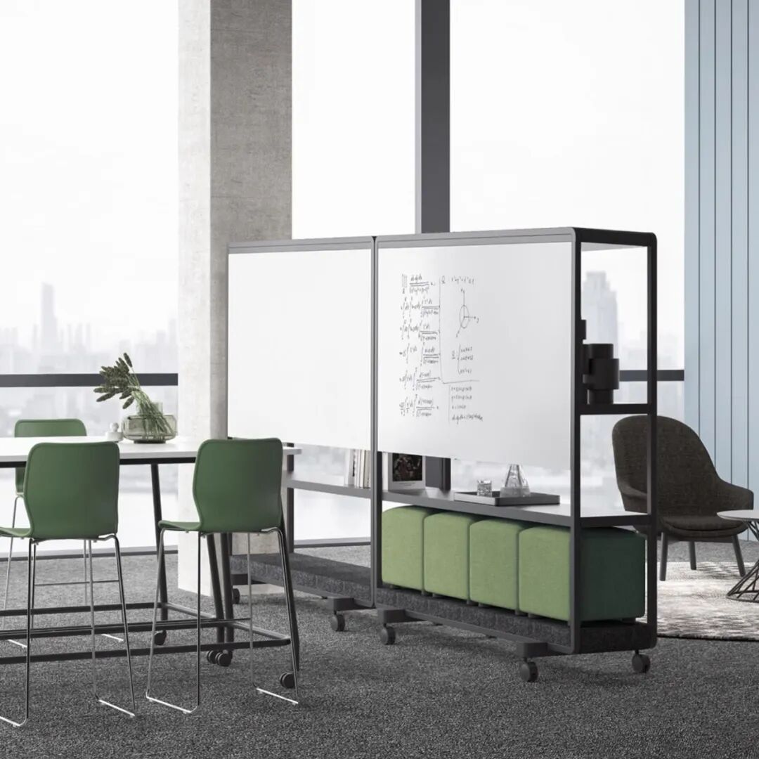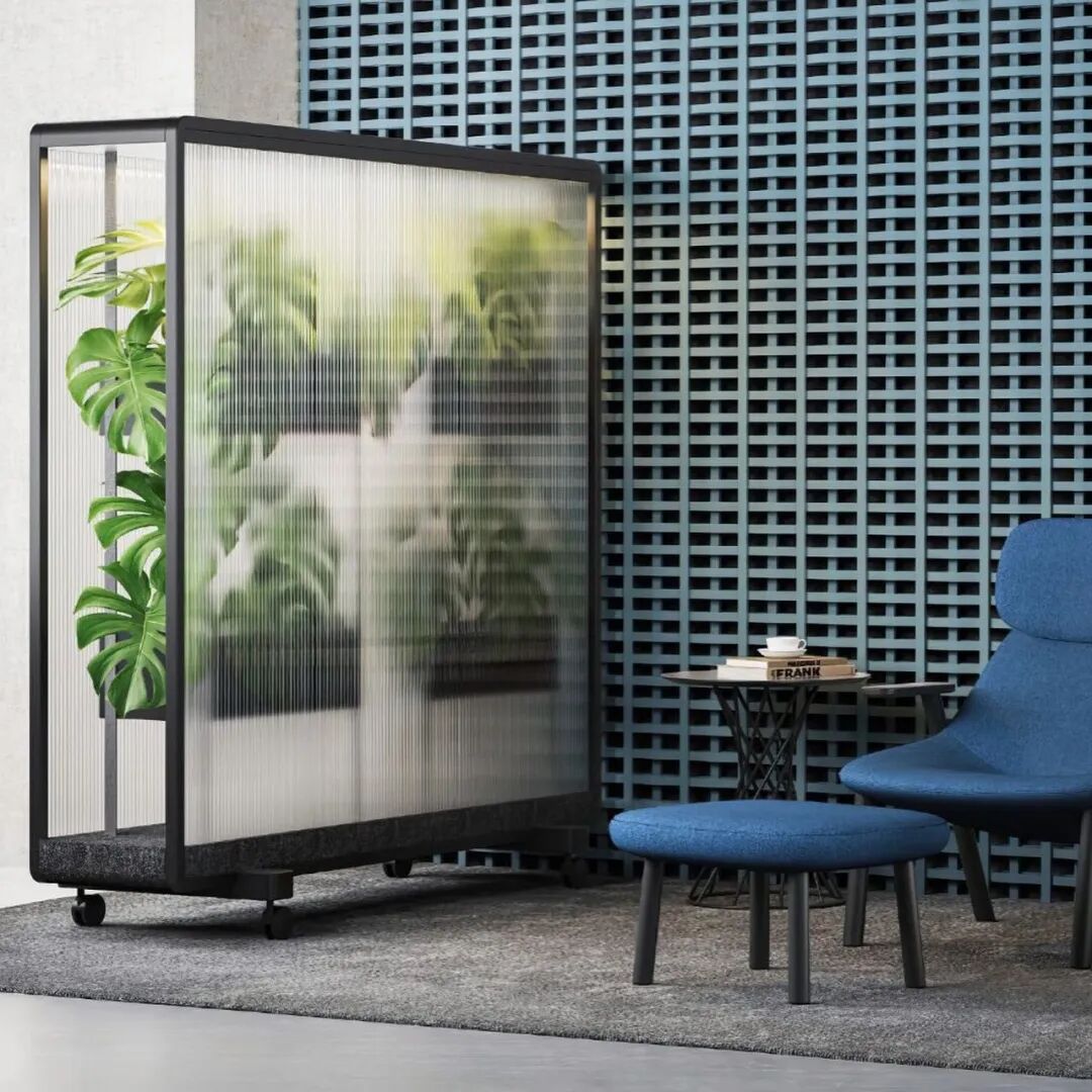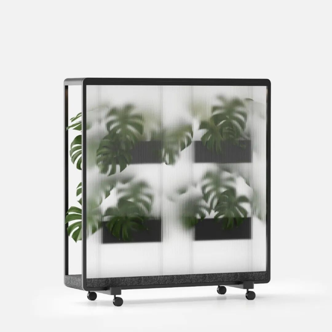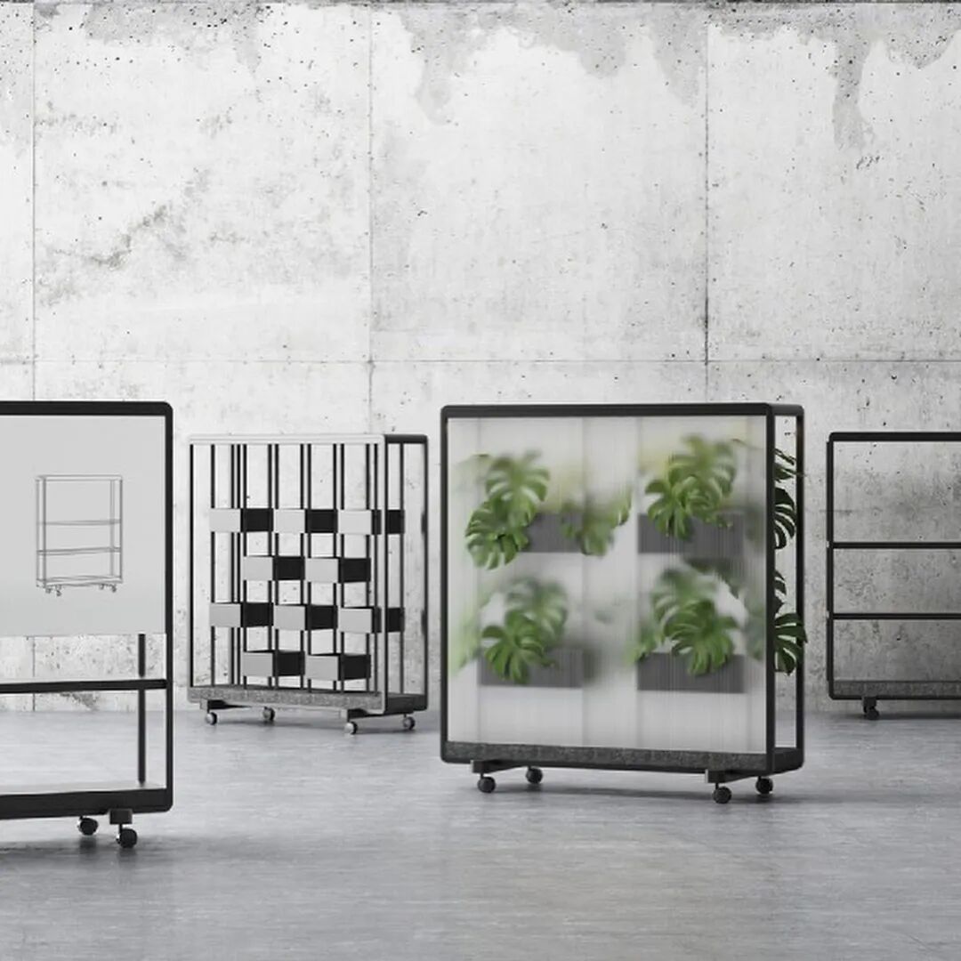 结合功能性和可持续性的创新办公架设计。该系列搁板有垂直立柱,可连接多个花盆,也可用于连接白板,具体取决于用户需求。带凹槽的玻璃面板增加了视觉上迷人的元素,同时允许阳光漫射到植物上。灵活的设计和底座上的轮子使其可以轻松移动,成为房间布局的多功能积木。