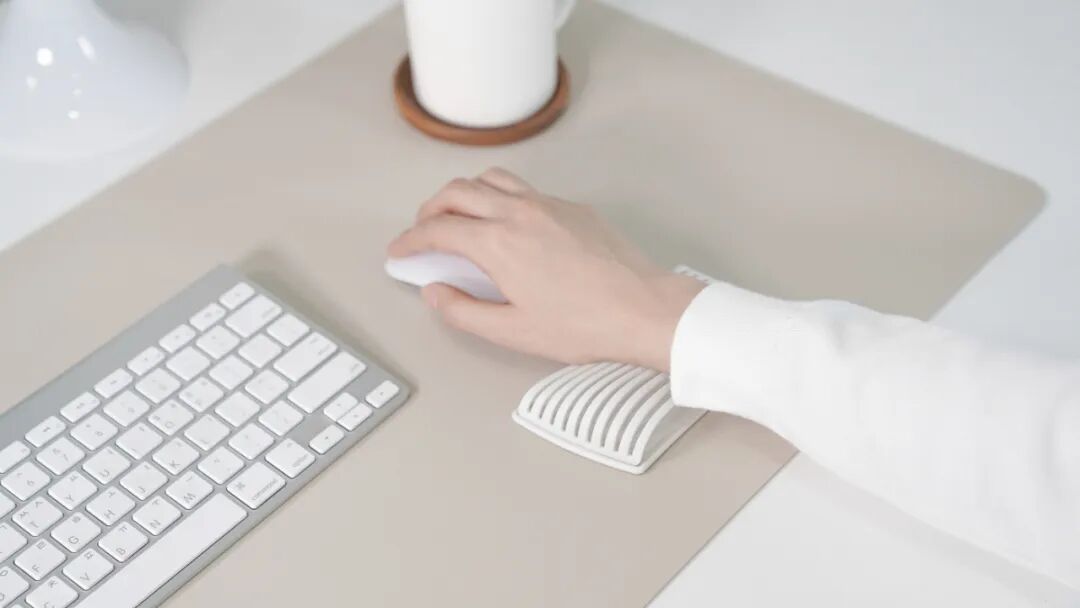由于上班族每天使用电脑和鼠标的时间很长,越来越多的上班族正在经历腕管综合症。这款鼠标垫以符合人类手腕的形状,使用一种耐用的缓冲材料,可以聚集曲线并平滑变形以贴合手腕,来缓解手腕的疲惫。