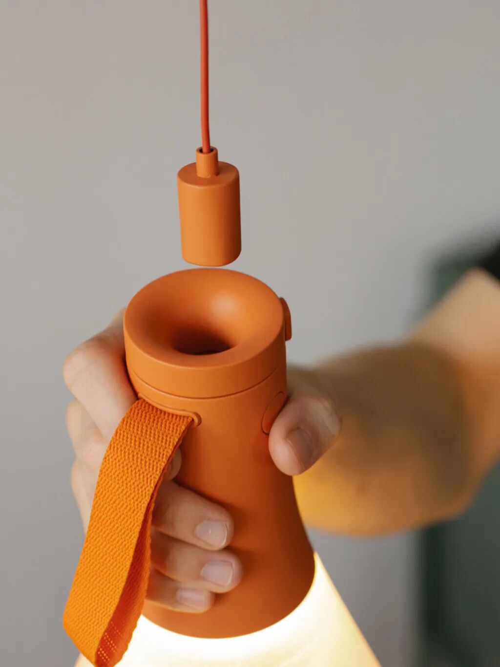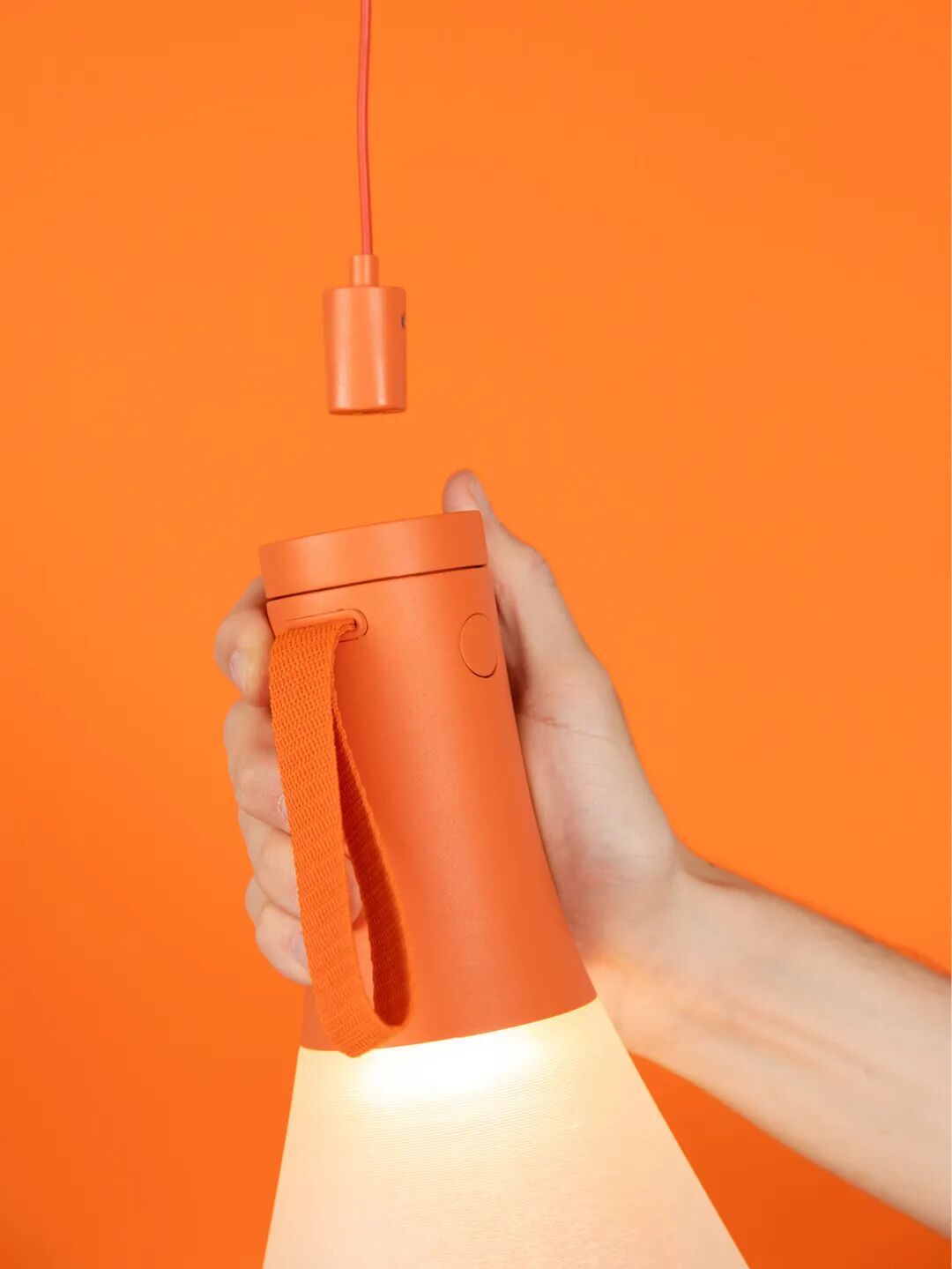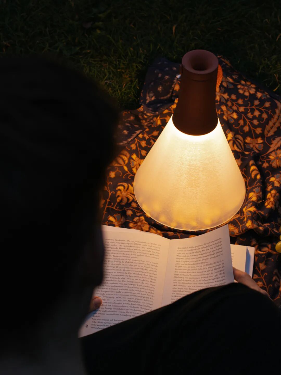 将灯具卡入吊装插头时,它会轻轻闪烁以指示正在充电,磁性矩阵可确保正确牢固的定位。只需轻轻转动锁环,磁扣就会再次打开,Vespertine 成为白天以外活动的便携式光源,营造室内外的照明氛围。