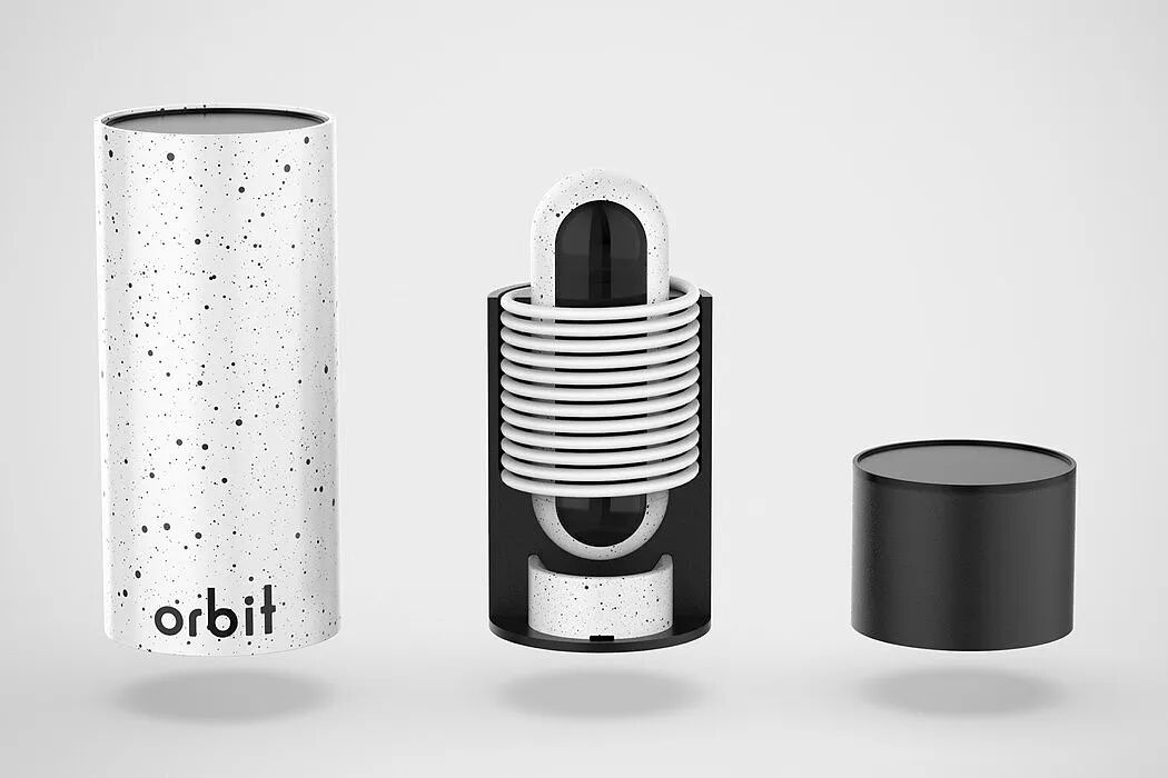 Orbit是一款家庭安全摄像头,灵感来自太空。Orbit 在机身顶部和底部配有两个摄像头。位于顶部的摄像头可360°旋转,底座的摄像头固定使用,提供更广阔的视野,确保不遗漏任何角落。主体外观设计采用聚碳酸酯化合物,含有玻璃纤维。这种材料非常耐用、重量轻、抗震,并且能够耐受湿度和温度变化。