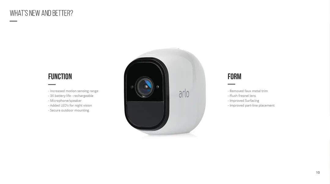 这是世界上第一款也是唯一一款 100% 无线、防风雨、可充电的高清智能安全摄像头,具有音频和 130° 视角。Arlo没有电源线连接烦恼,CR123A电池可提供长达6个月的供电,增加夜视LED功能,在室外也可以使用。附带磁性底托,在需要安装的地方将Arlo放上调整好角度即可。
