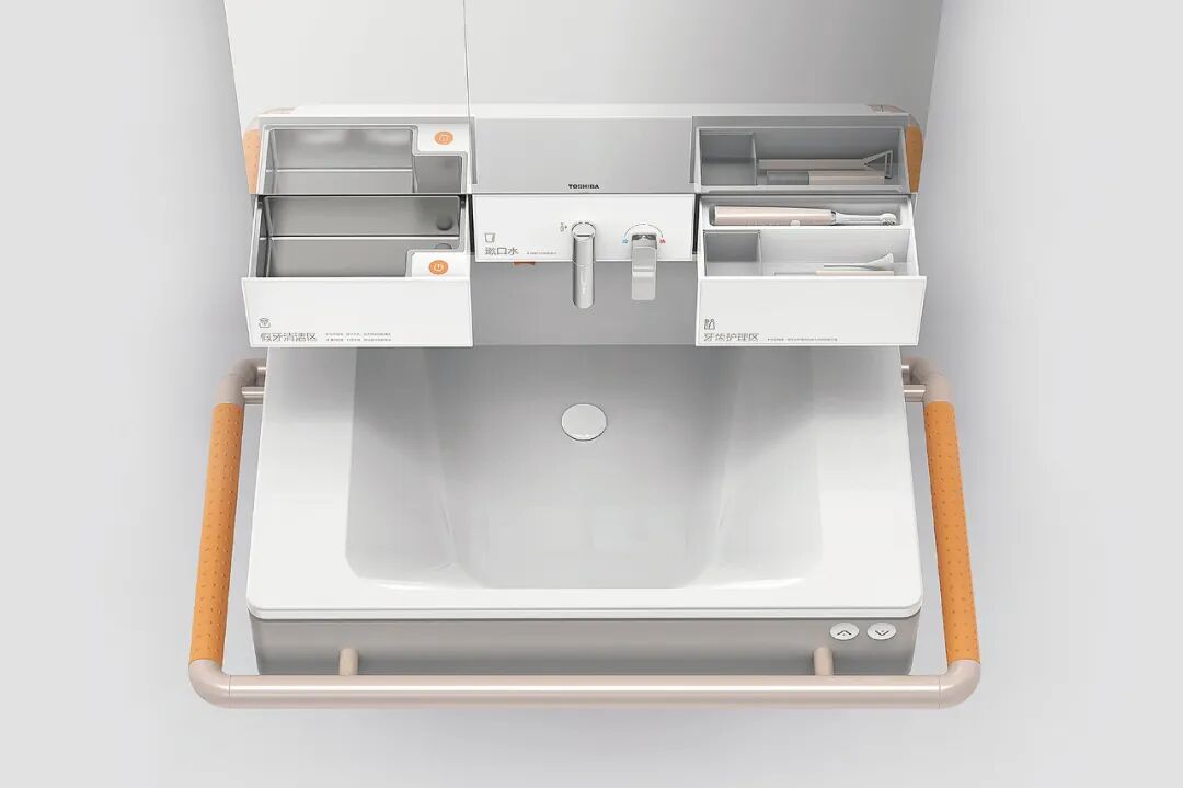 医用一体浴室柜针对老年人的特殊需求量身定制,体现了人文关怀。它包括一个专业的假牙清洁区、一个便于用户取用漱口水的存储区,以及一个方便洗头的可伸缩水龙头。可升降设计、防滑扶手、严选材料、精工细作,确保用户更安全、更舒适的体验。