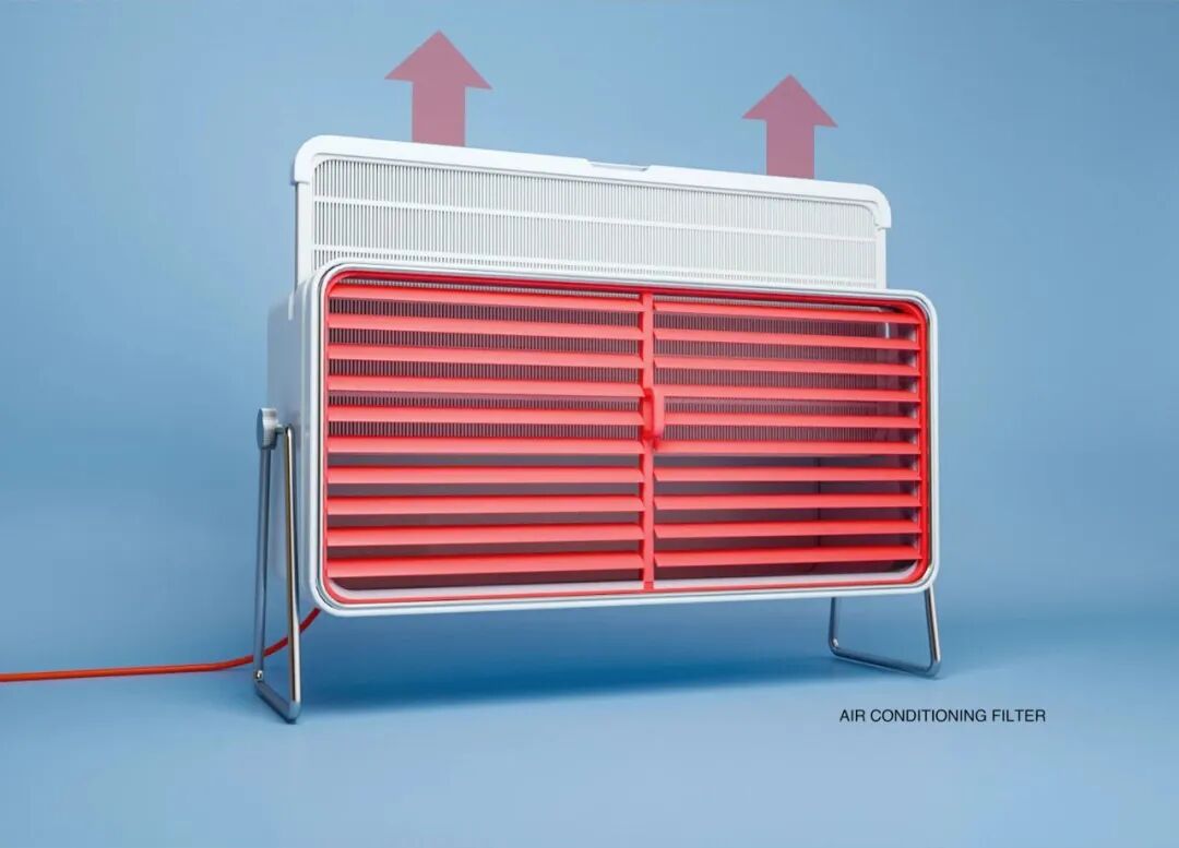 Retractable可伸缩空调和空气净化器基于一体化移动空调概念设计,在尺寸上可以实现更小、摆放更方便。它由可回收环保材料制成,造型来自手风琴的风箱。