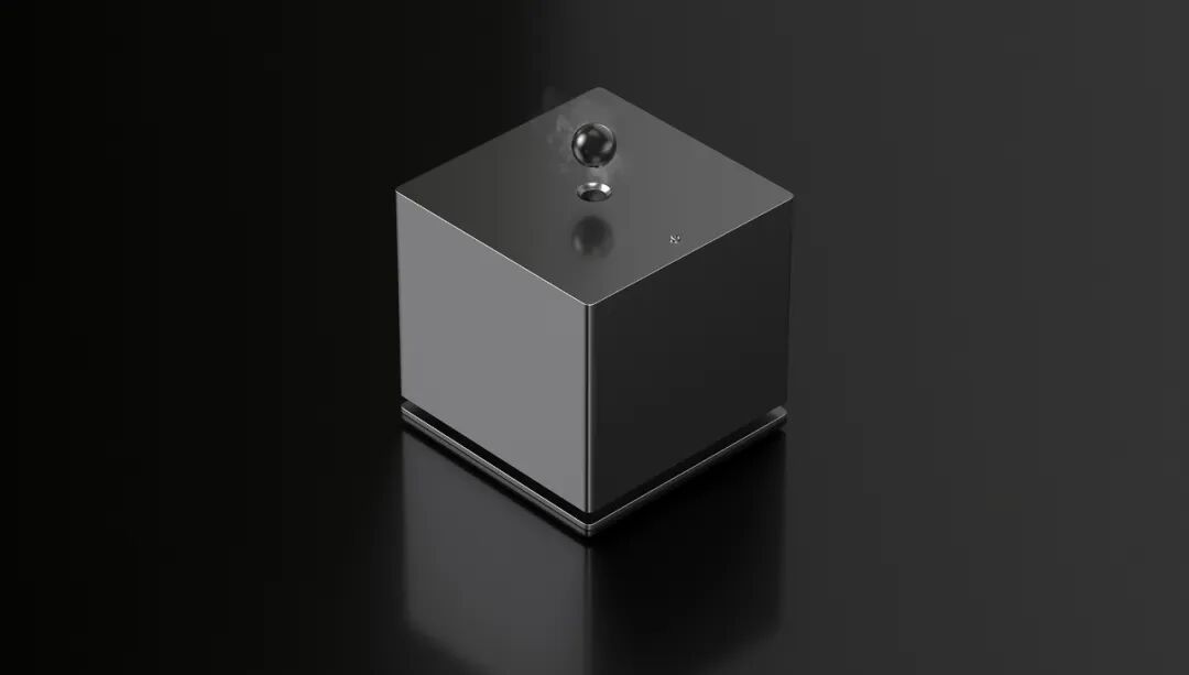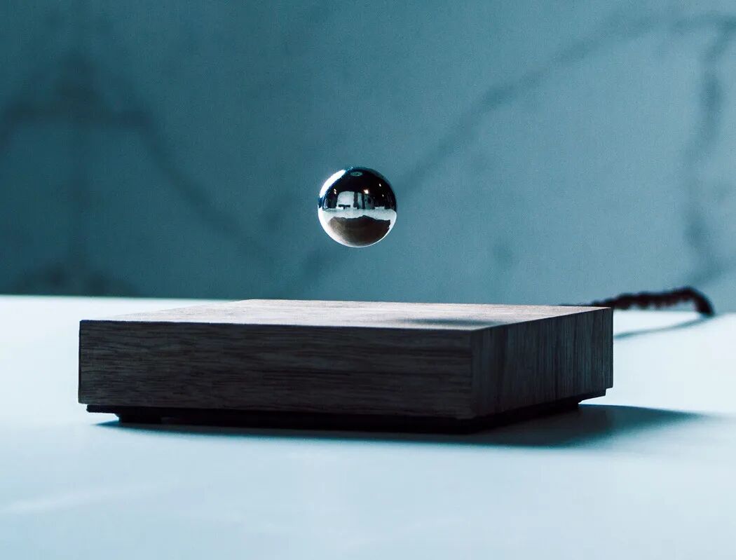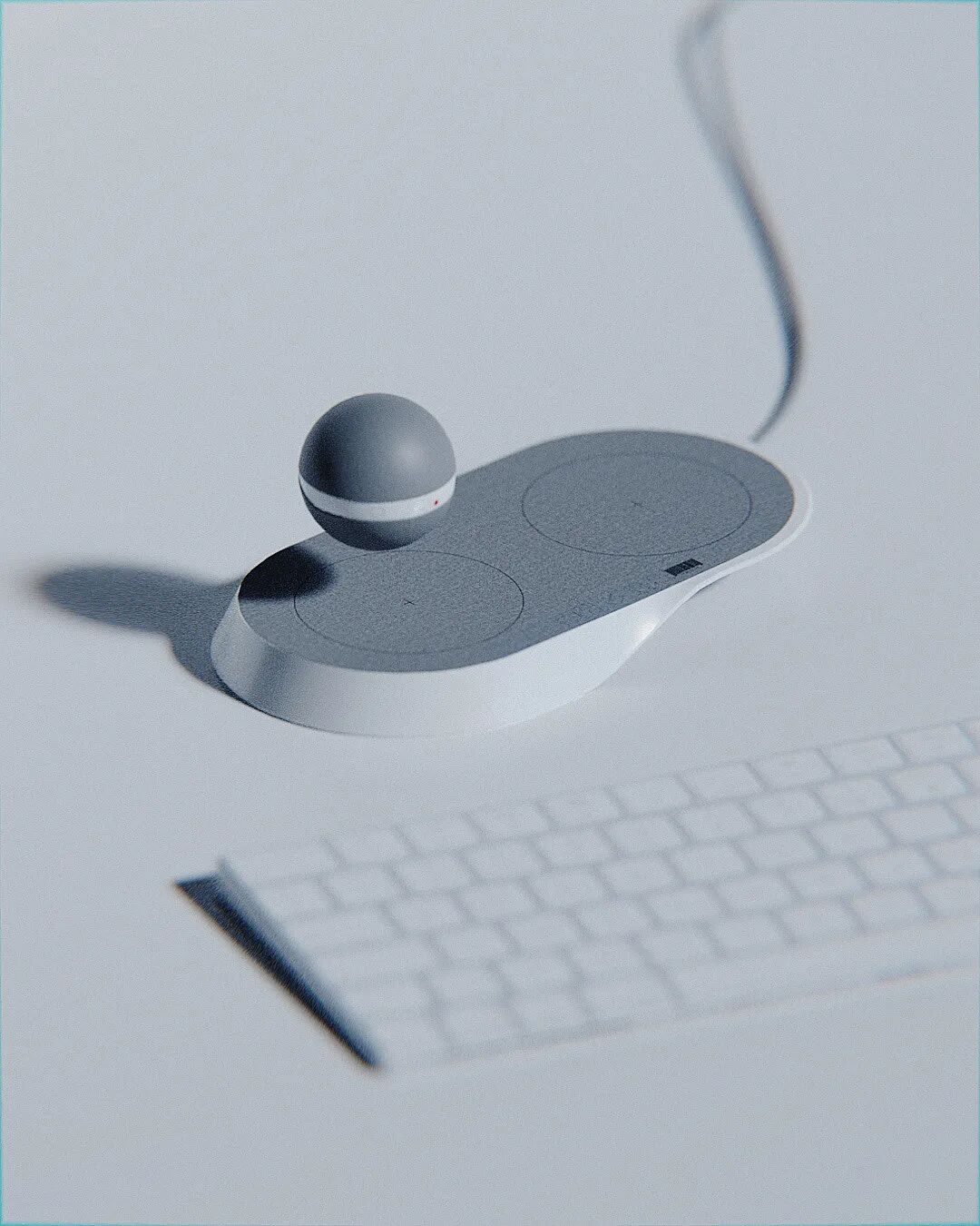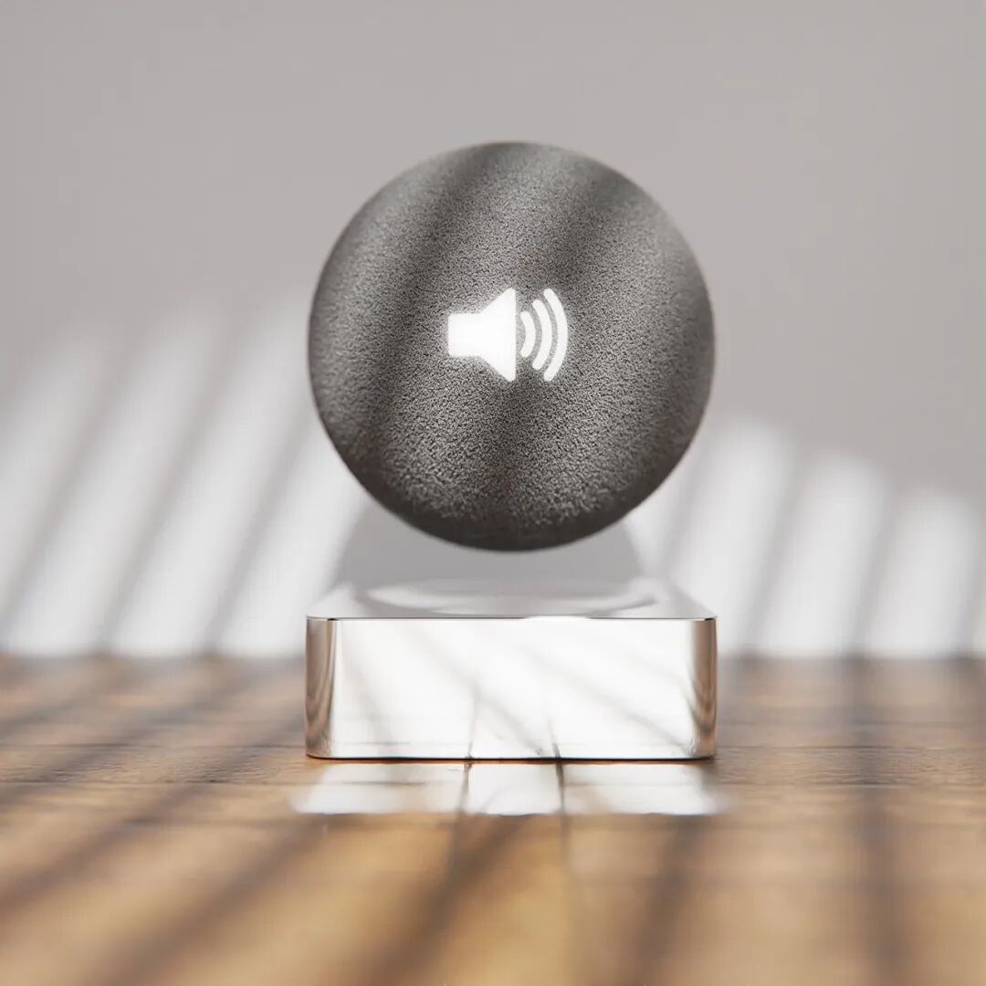 这是一款悬浮智能音箱设计,这种悬浮的智能助手概念让智能音箱更具未来感。它与大多智能音箱不同,盘旋在金属底座上方的球体上覆盖着一种看起来粗糙的材料,除了唤起对悬浮在空中重物的惊奇感之外,略带粗糙的纹理与下面光滑而有光泽的盒子形成了令人满意的视觉对比。