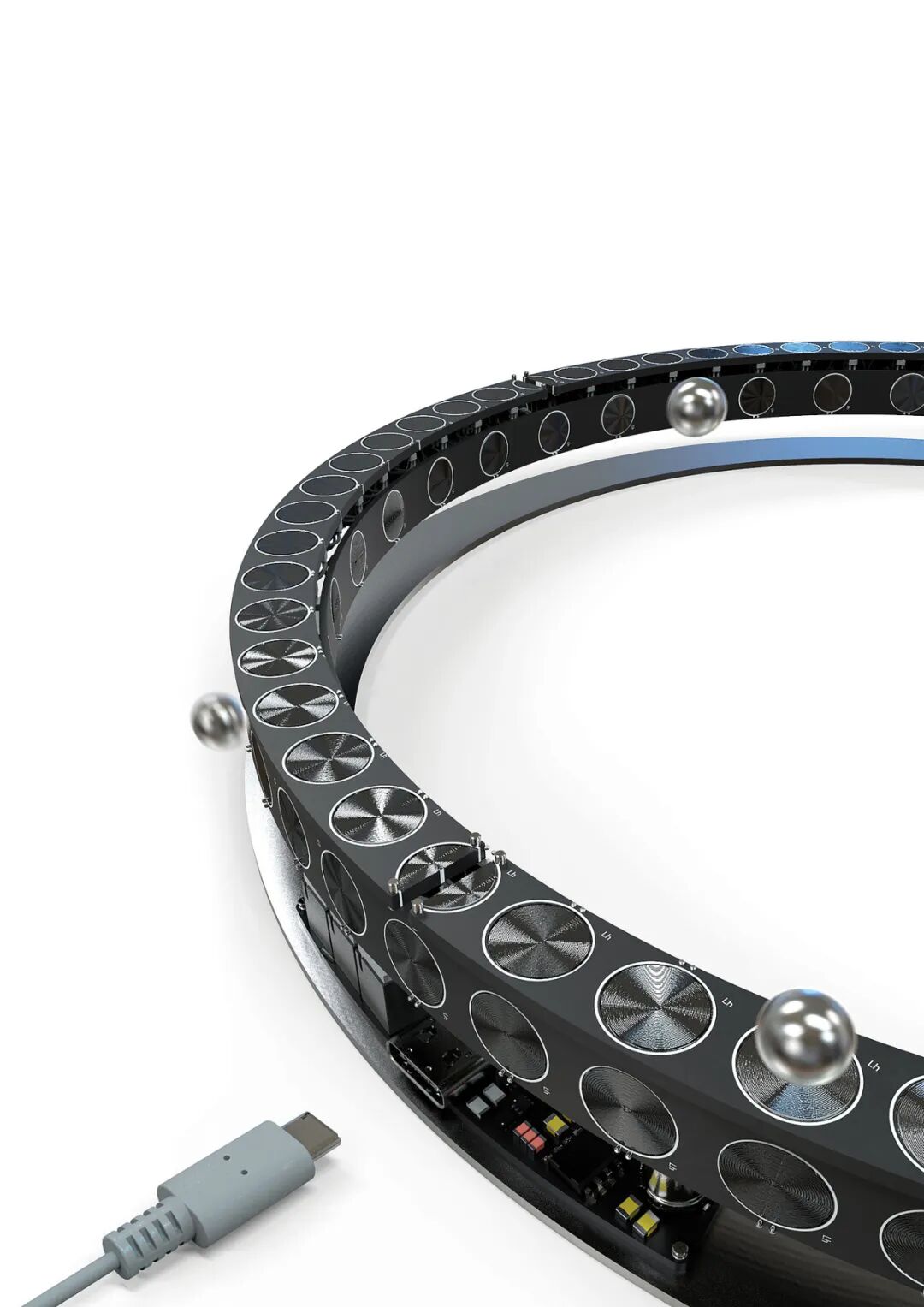 时间是绝对的,但时间是有限的!一款没有上下左右之分,重新定义了时间位置的时钟设计,内置的IMU可以感知它与Y轴的关系,因此它可以调整它的指示器以适应它的放置位置,使用132个线性PCB电机,O'clock创建自己的控制磁场以表示小时、分、秒的金属球在表面移动。