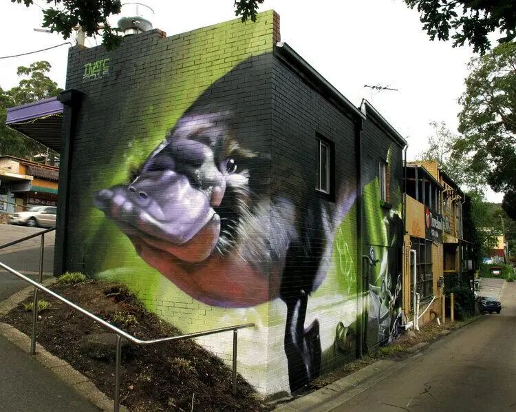 最让人吃惊的是,吉米·德瓦特的作品不仅骗过了很多人的眼睛,甚至有一些动物在经过他的作品时,都会有一刹那的错愕,分辨不出真假。之所以能够达到如此强烈的视觉效果,是因为这位街头艺术家对待每一个作品都非常认真,由于尺幅巨大,他在创作之前,都会根据主题,以及要绘制的墙面进行规划设计,吉米·德瓦特很擅长营造纵深感,能够将透视关系处理得十分完美。