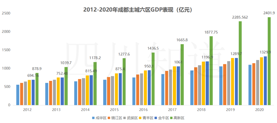 新华社11月2日报道称,前三季度,成都高新区继续以2034.2亿元的GDP总量领跑成都各区,值得注意的是,2012-2020年,成都各区县GDP榜首的位置,高新区一坐就是9年(暂不含未出炉的2021年全年数据)。