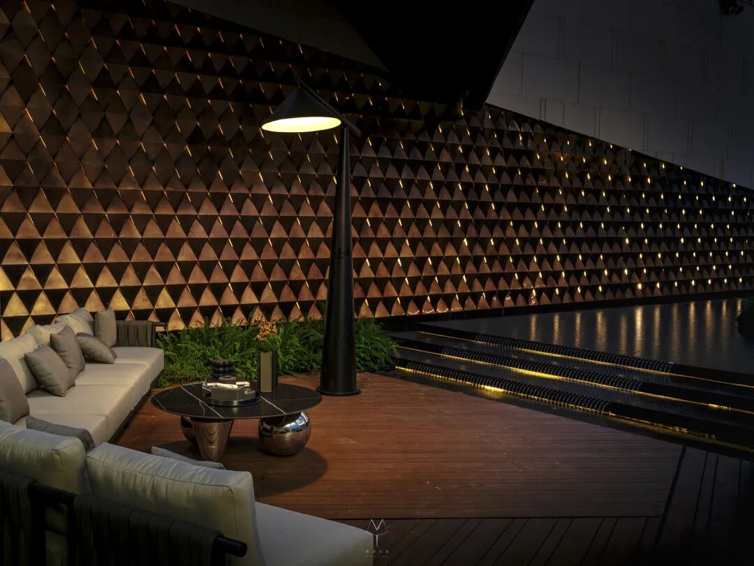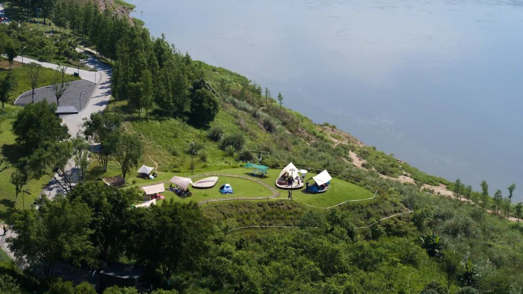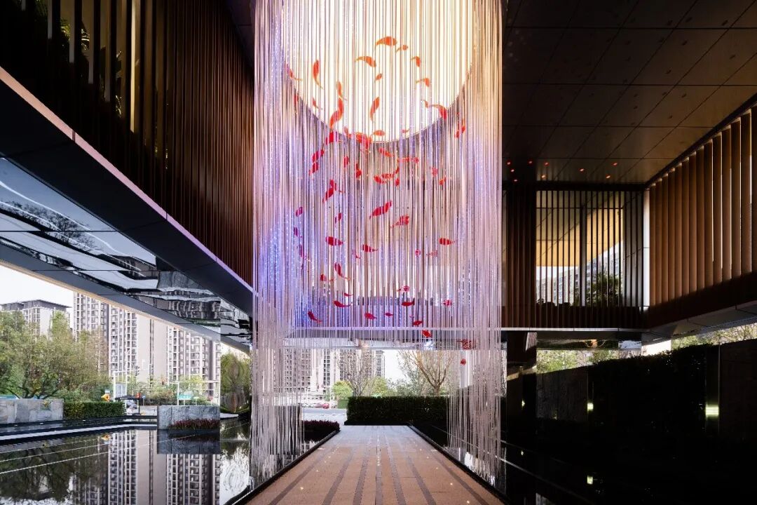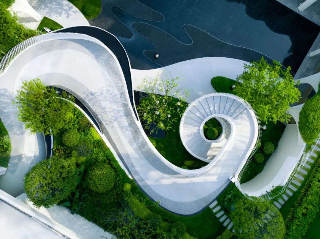 项目位于长沙洋湖湿地公园与湘江之间,面向联江公园展开,背靠大王山,是生长于山水之间的稀缺之地。设计穿梭于自然、生活之间,将建筑、景观、室内有机交织,在有限的场地内与万物开启一场对话,打造一座穿梭于无界自然中的锦上花园。