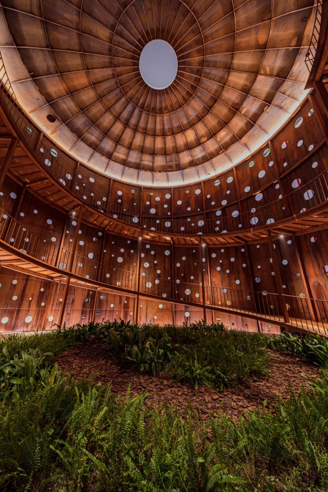 隈研吾新作,杭州城市更新新地标。曾经的大油罐,在设计大师手中变身为“大灯笼”,曾经的红砖墙,以艺术的蝶变华丽转身,波浪状起伏艺术幕墙以半镂空的形式呈现,远望如一块块空心的红砖。就连曾经的油罐字体,也被提炼成各种标志符号和钢铁材料和色系,散落在小河公园的各个角落。
