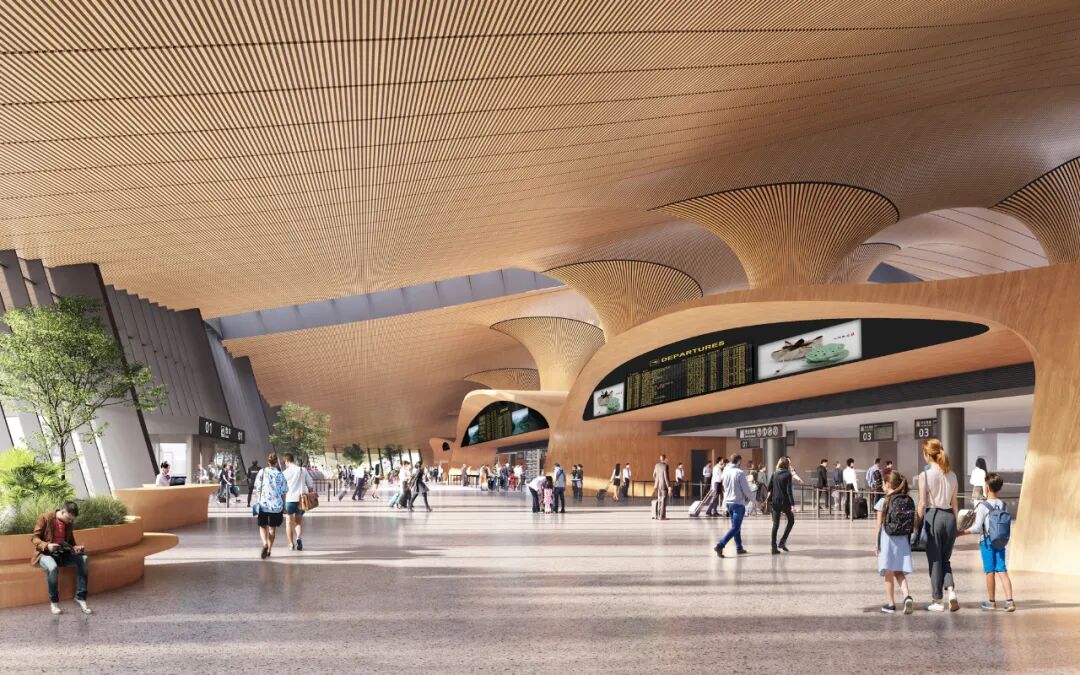 机场位于丽水市西南部的丘陵地貌中,基地地形起伏变化较大。MAD对机场航站区的规划设计在确保机场交通便捷顺畅的前提下,尽量尊重原始场地,并突出山地机场的特色,创造出 “飞鸟、云雾、山丘”的意境。